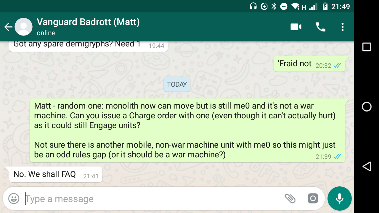 Or add an addendum that me0 units canât be given a Charge order (thus allowing such units to exist outside of being war machines)?
