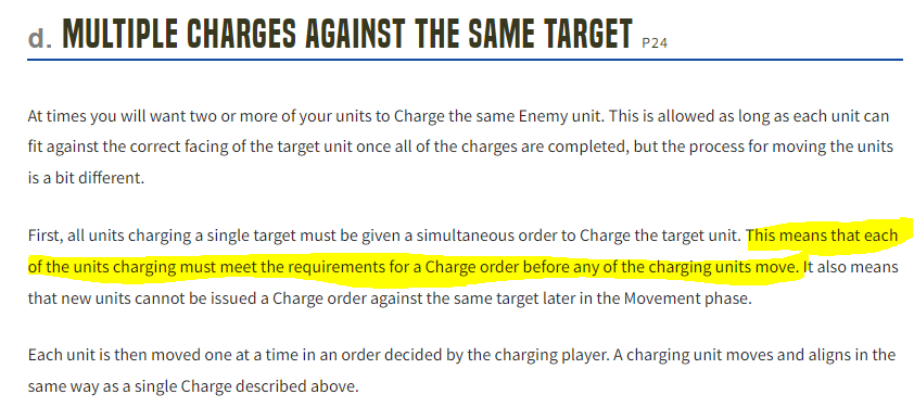 Point is, my cavalry can only move 4" sideways. With this move, they cannot get 1" away from the infantry. (movement 10 gur panthers can do this, however) Therefore according to the rules quotation below, I cannot make this movement. Correct? In this example, there’s no way to get info combat with the large infantry horde.