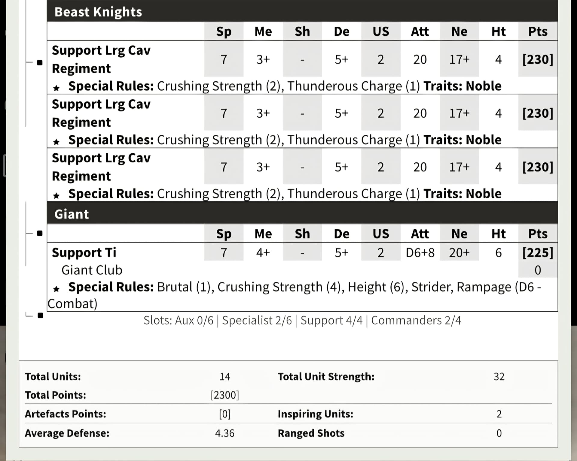 Thanks. The Knights primarily. I could pontially exchange one of the halberdiers and a magic weapon for light cavalry but have never had much joy with them.