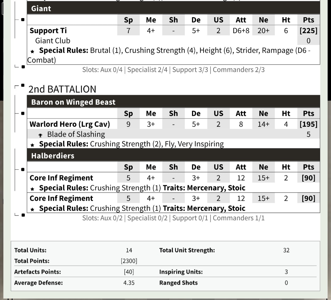 That said, the double (or even triple) halberdier horde is also very tempting. I’m pondering a list in which all my infantry has a place, taking two hordes spears, two hordes of halberds, one of foot guard and some shooters alongside the double baron on flying beast, several troops of shield wall/halberds and a regiment of fanatics.