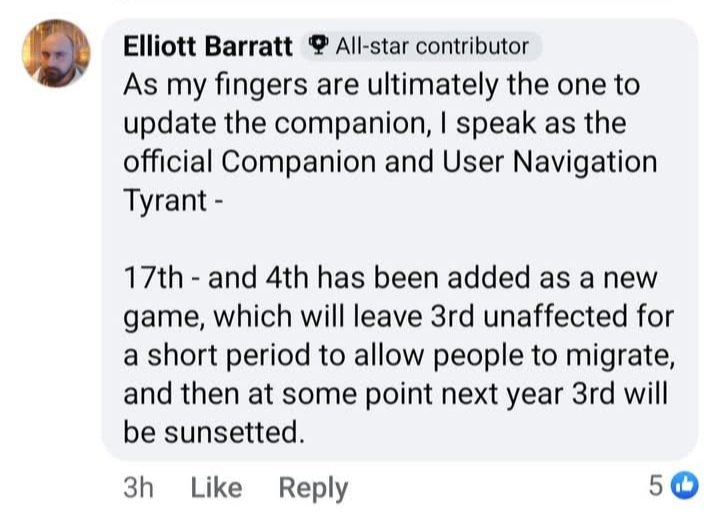 Plus as v4 is effectively a brand new game, Elliot will hopefully have had plenty of time to ensure that everything matches between the new books and the Companion.
