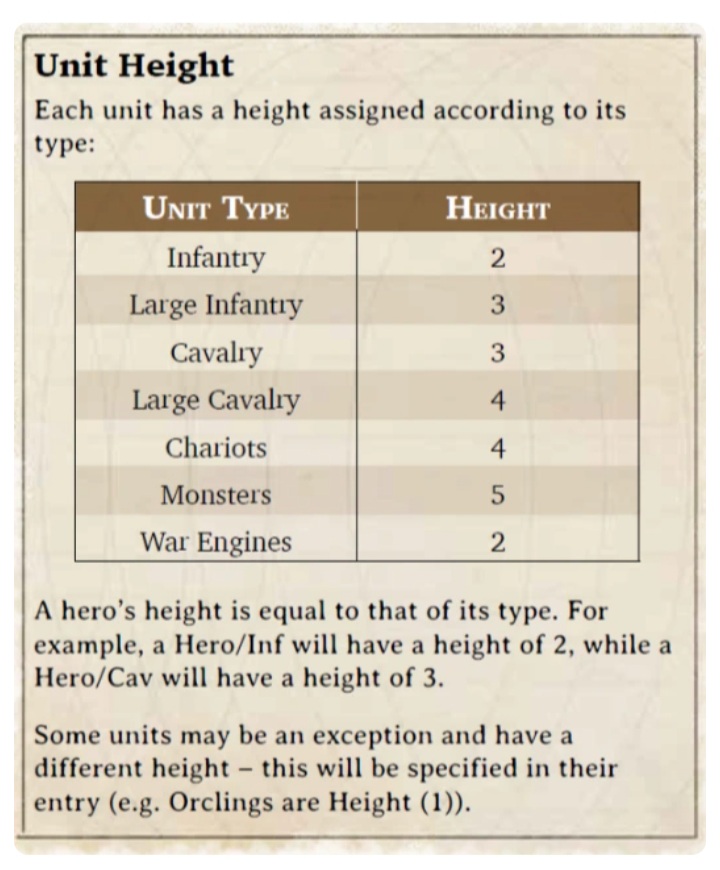 âIf a Titan (or any unit) has a different Height, it will be listed in the unit profile. If it does not have a different Height listed in the profile, it uses the default Monster height of 5. So unless specified otherwise, everything that affects Monsters, also affects Titans. Same for the other unit types.â