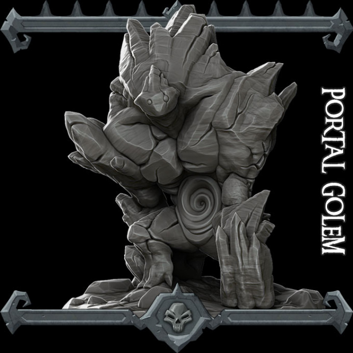 RPG - Portal Golem (https://www.myminifactory.com/object/3d-print-portal-golem-120041 ), or more like Riptide Golem if the portal is painted as swirling water