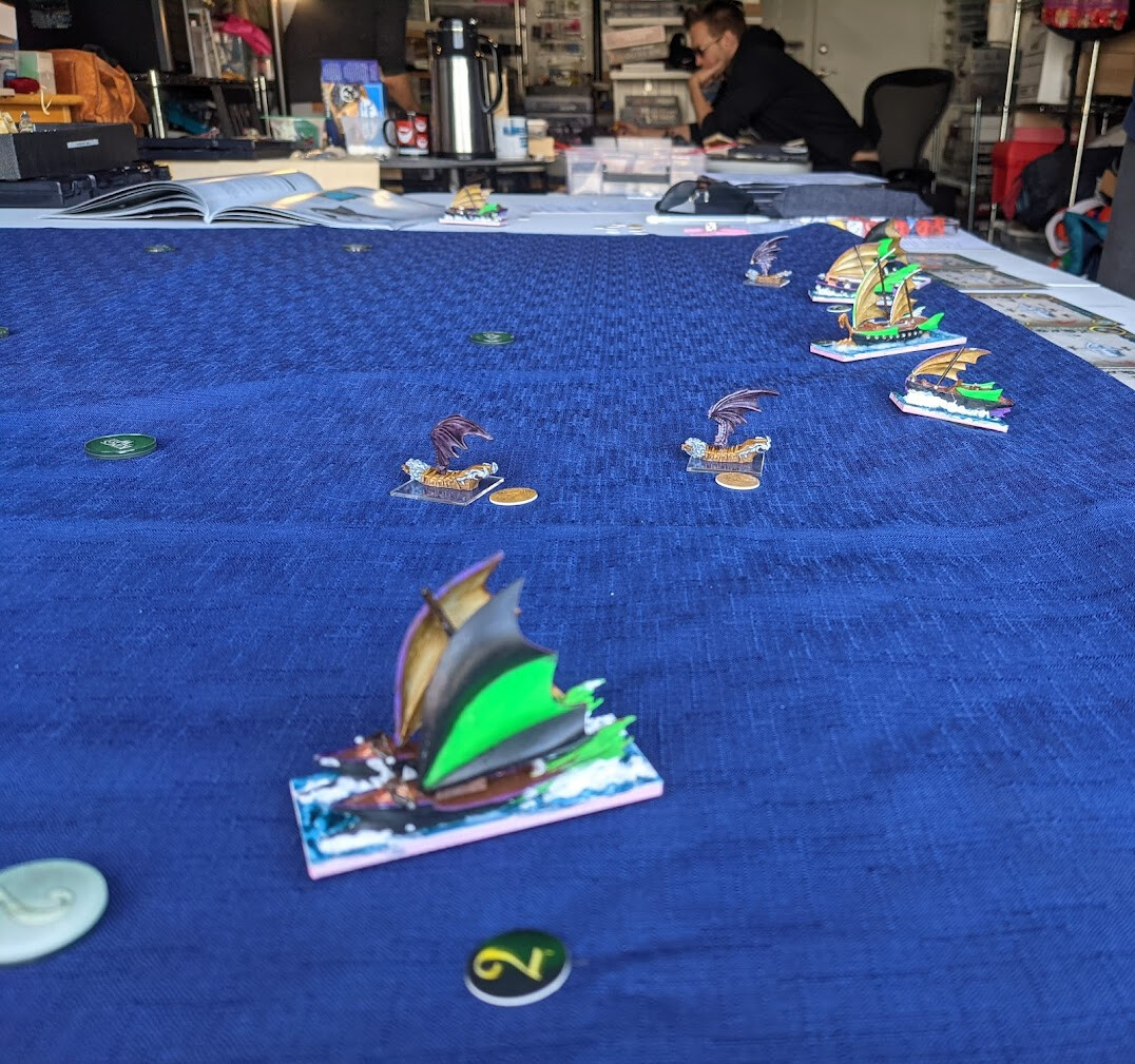 The scenario was Flotsam and Jetsom, with no terrain, and simple wind rules. This was going to be a race, followed by a game of cat-and-mouse.
