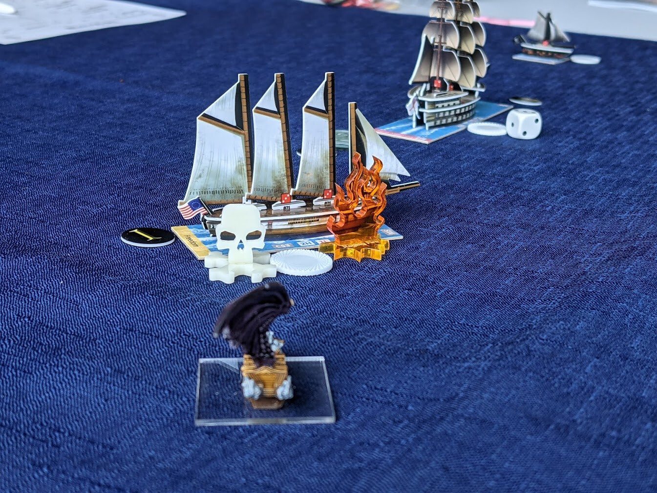 However, in the post-game, we ended up about even. My opponent’s repair costs were negligible, but my Frigate, Freedom, would sink to the bottom with all hands. (Plays Taps)