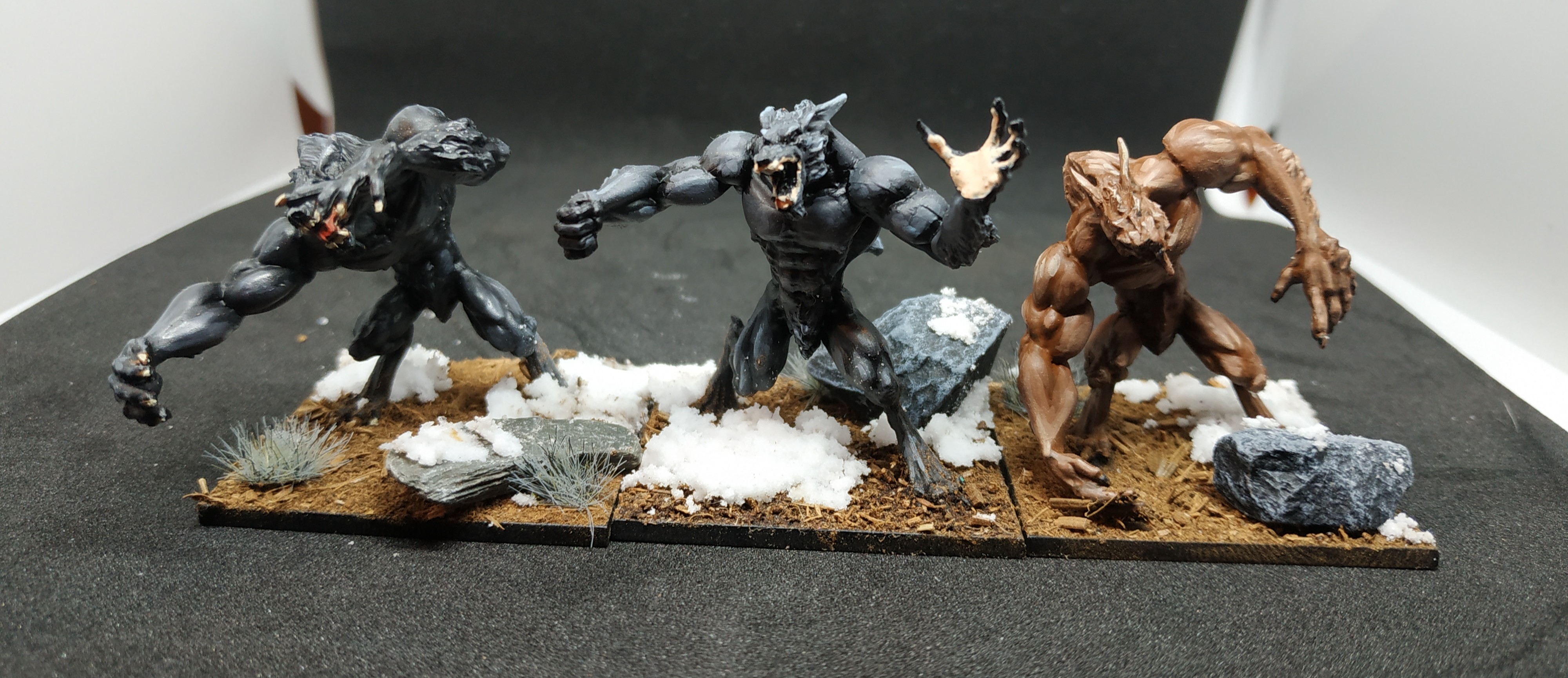 As the werewolves are quite small for their bases I had more space to fill so I put some rocks on it. Painting wise, I did not try to do an original paint scheme since just different fur colours, but I really enjoyed painting those models with those wide muscle pannels to get creative with highlights and shadings.