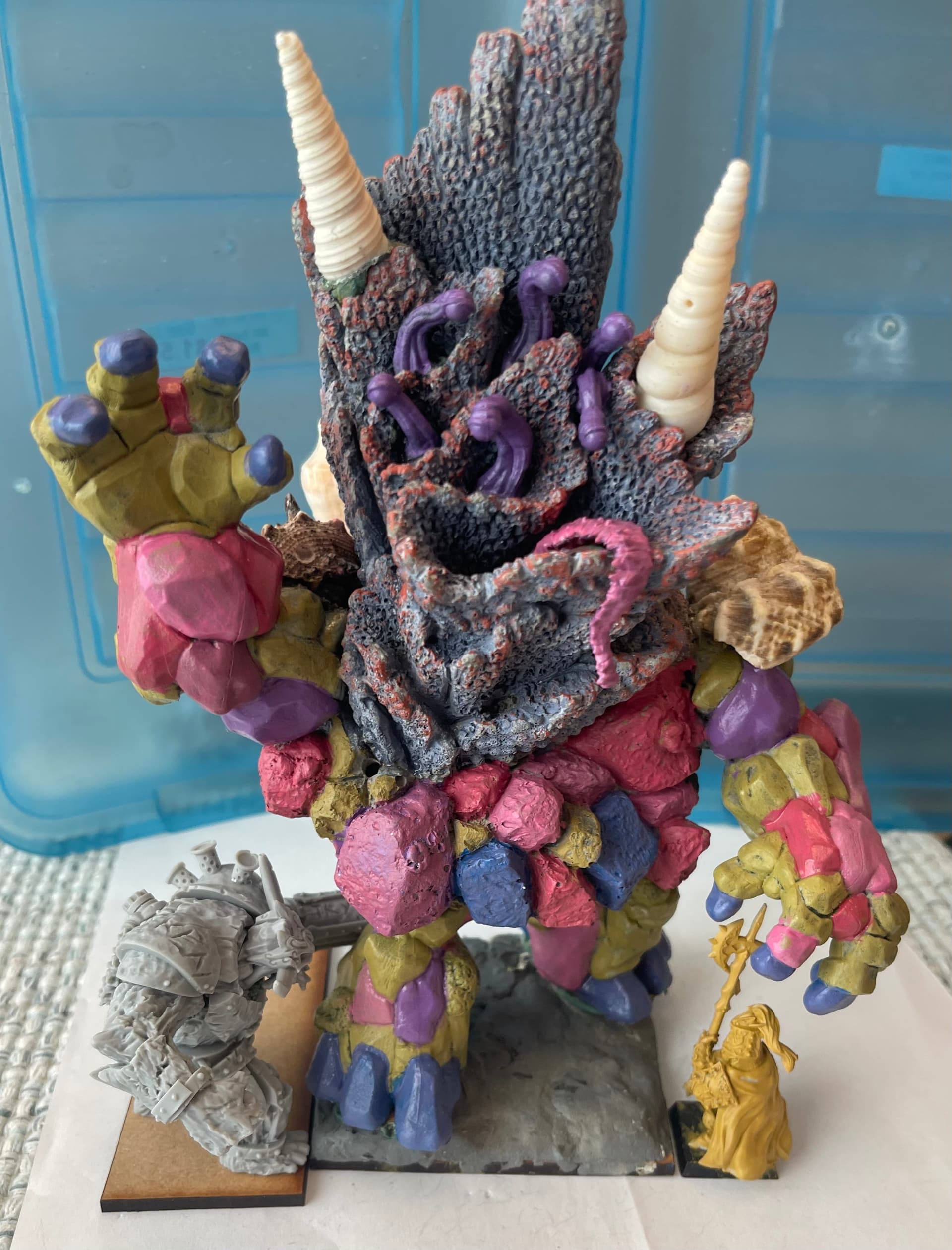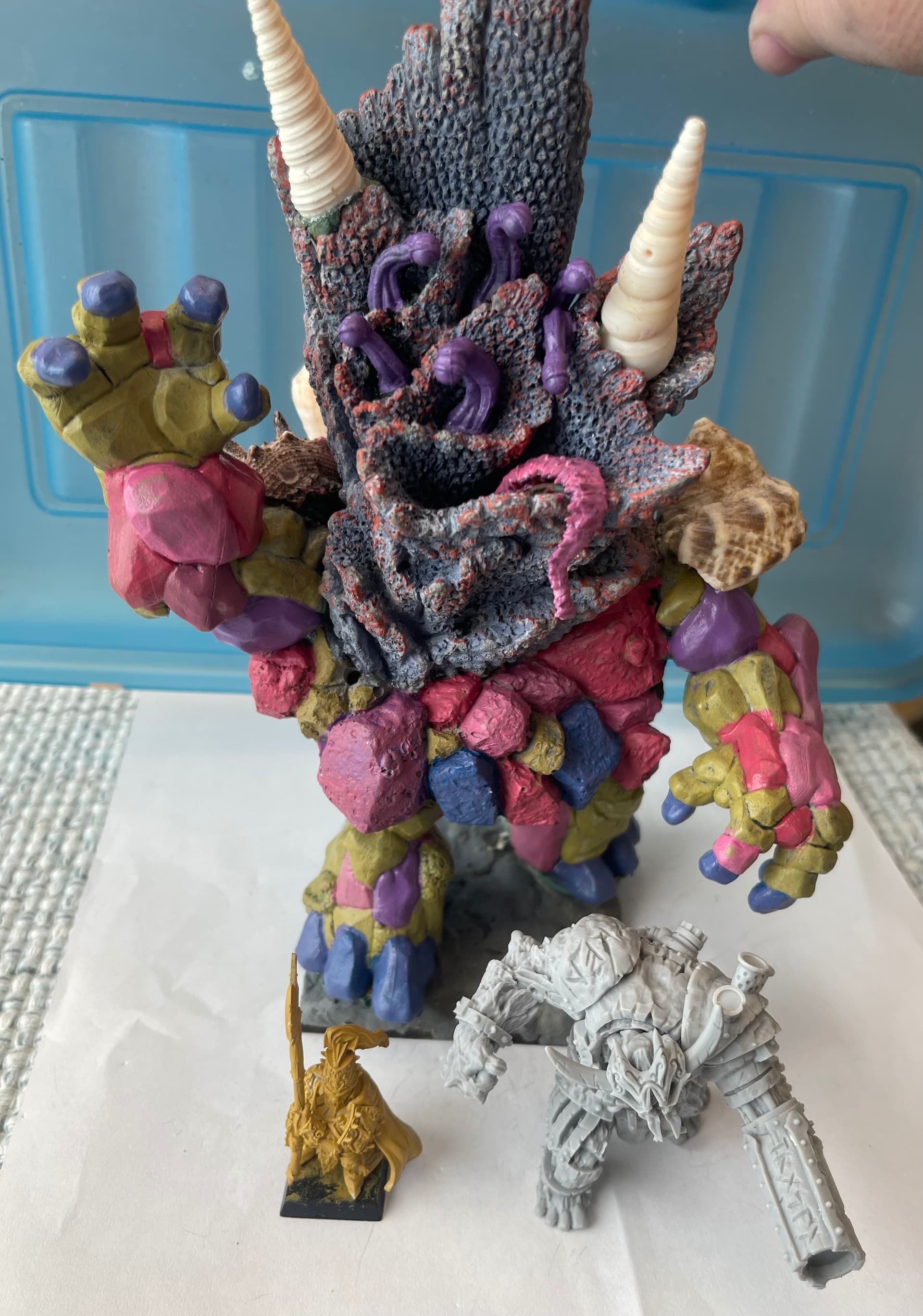 I sure hope so too! Now for the details, like finishing the eye stalks, maybe adding some tints to the shells on the body too. I don’t have the actual Mantic model so don’t know that size comparison.