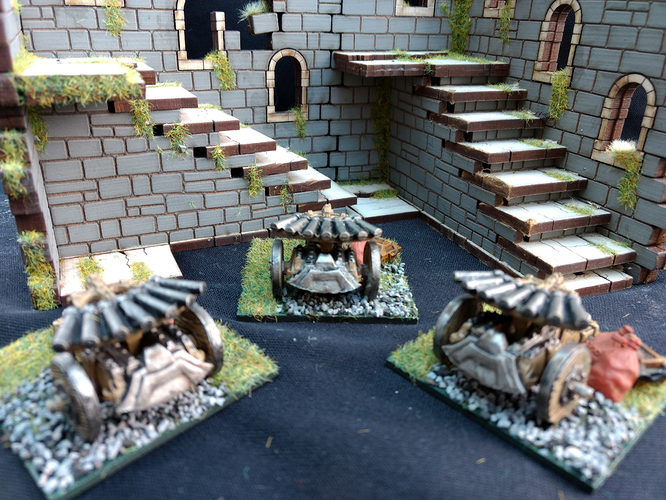 The Volley Gun is the war engine of choice for Rhordians but cannon can also be taken. The Dwarf Volley Gun is suitable for this purpose and can be purchased as an individual sprue without the Dwarf crew. The model can also be built as a cannon. Rhordian crew can be made from any of the sets selected as infantry.