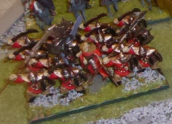 For Pole-Arms, I raided the red Loka sets, trimming off the goblin-like ears and replacing some of the hand weapons and appointing Blaine, bought with Mantic points, as the unit leader .