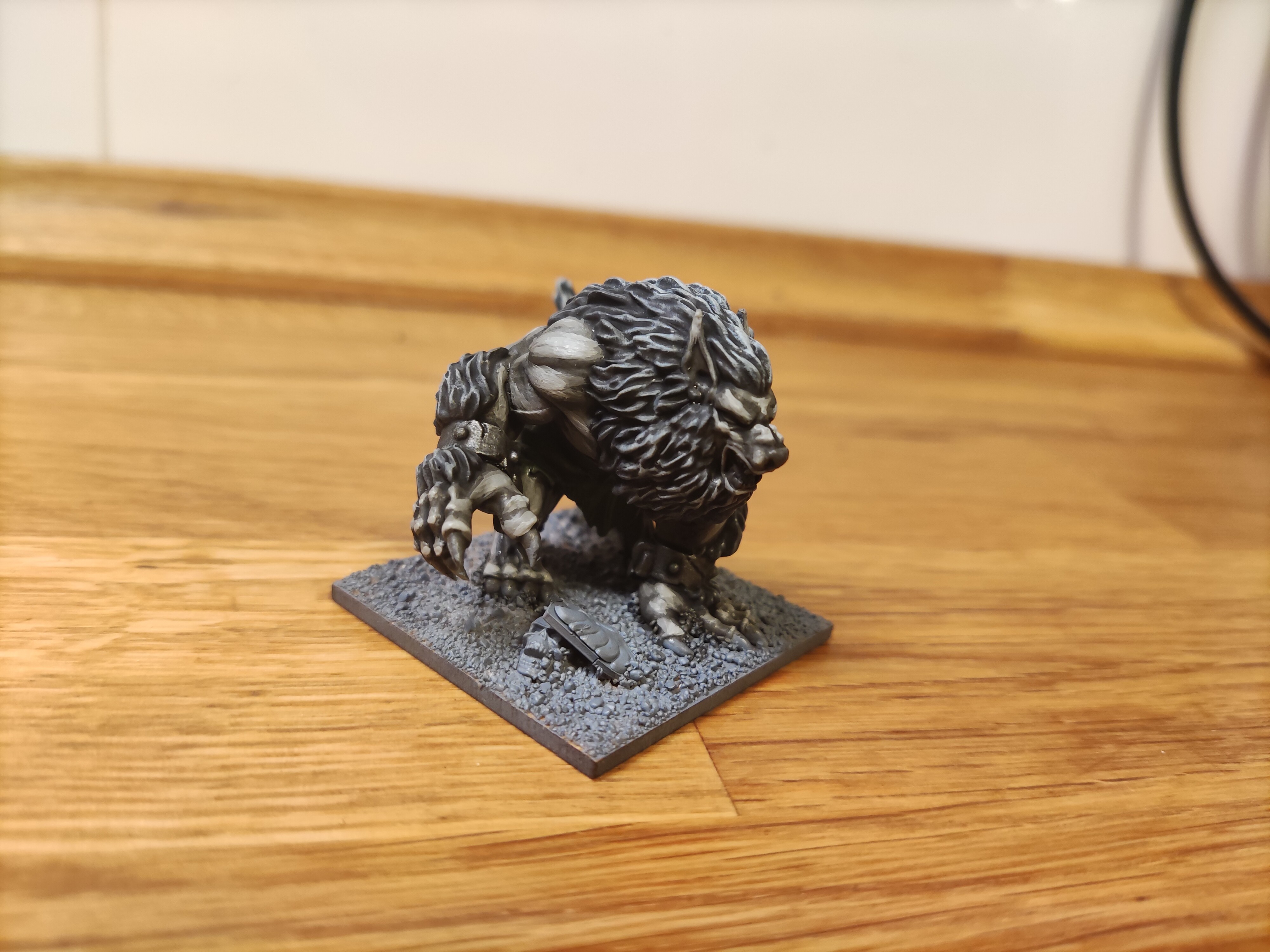 Hobby time is sparse atm, but I’m working on a Lycanis Alpha. He’s got Inspiring now for everyone. Maybe he’s worth a try now. The model is from League of Infamy.