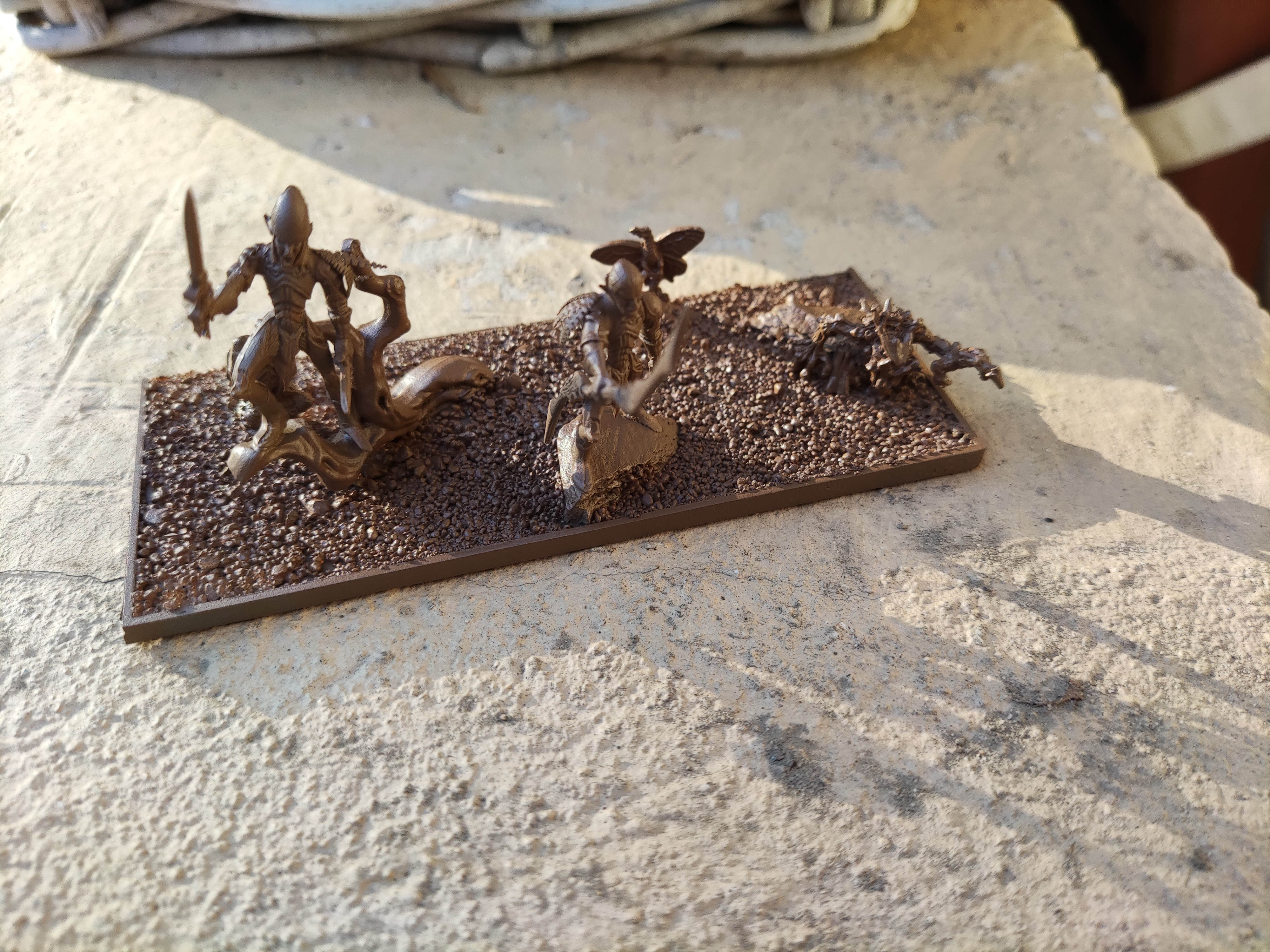 Haven’t been on the painting table mostof November and all of December. Today I found some time to continue ( as in glue two of them on the base and prime them) with my Sylvan Boskwraiths.