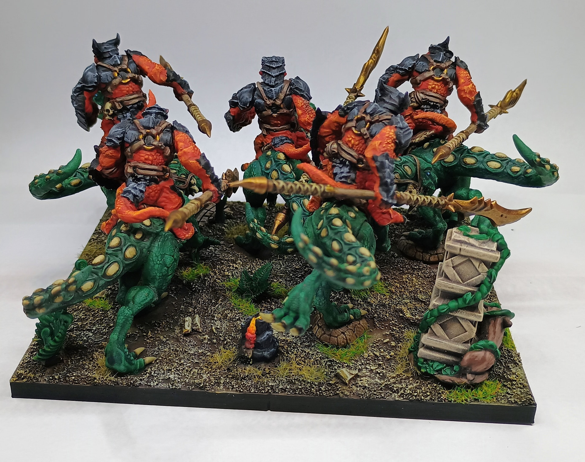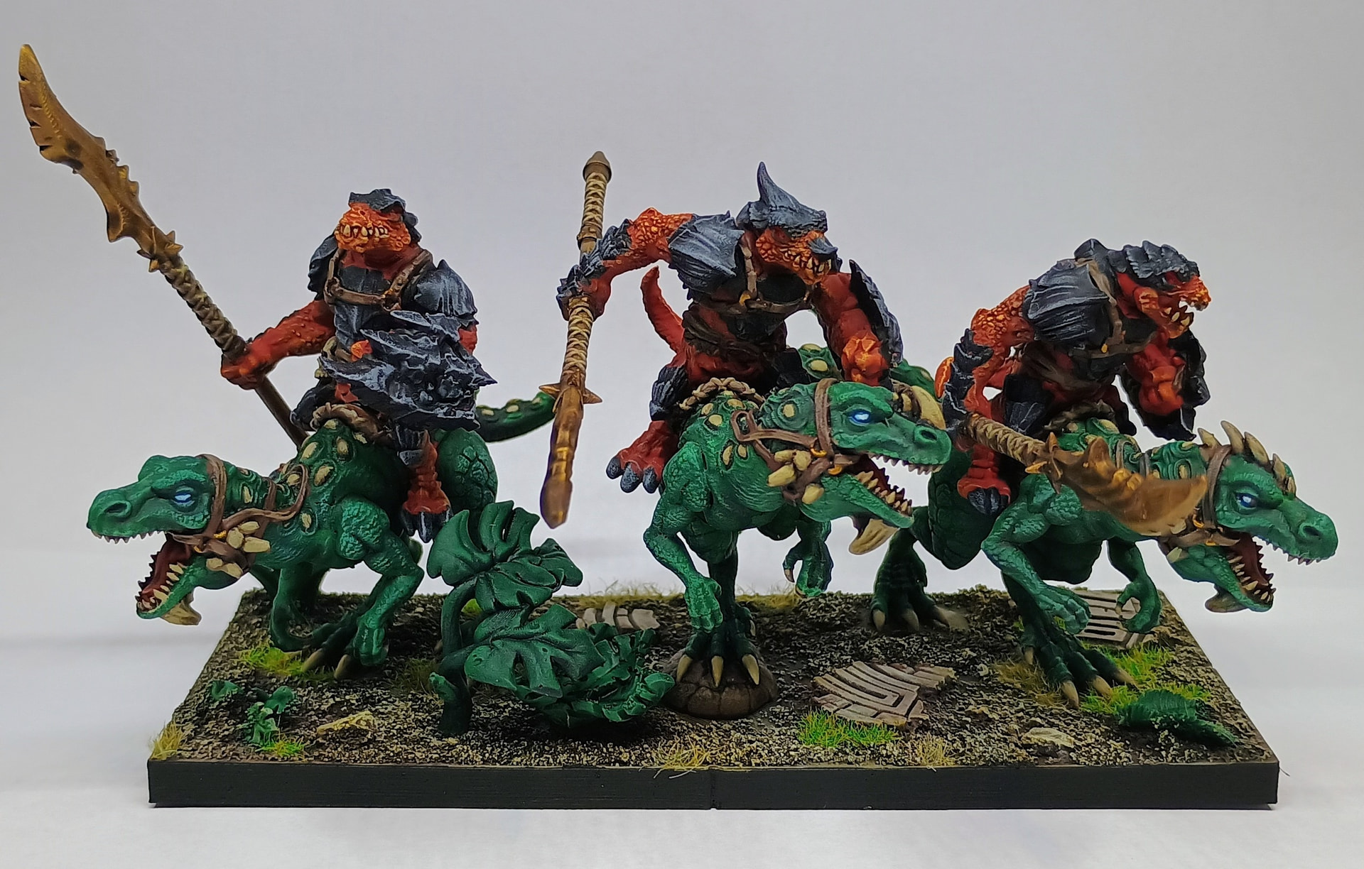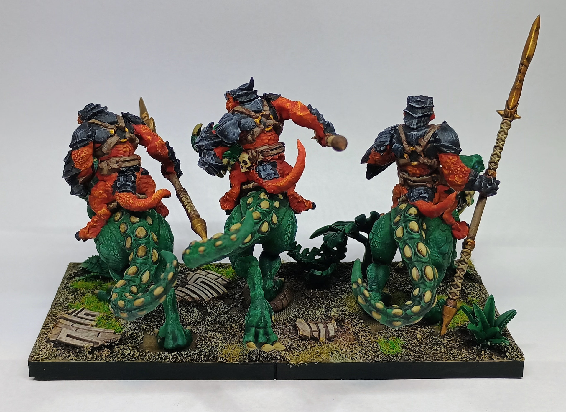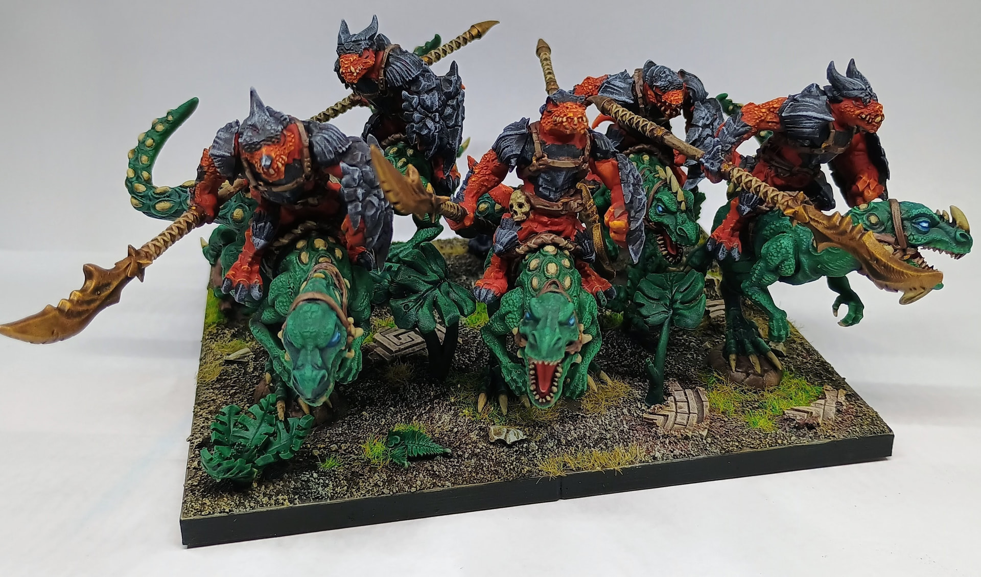 But who cares and why should it be dinosaurs and not just reptiles (which sport very colorful skin)? Well, there’s a big mistake considering Salamanders anyway. Real Salamanders are amphibians and no amphibian got scales, but Mantic’s look like reptiles.