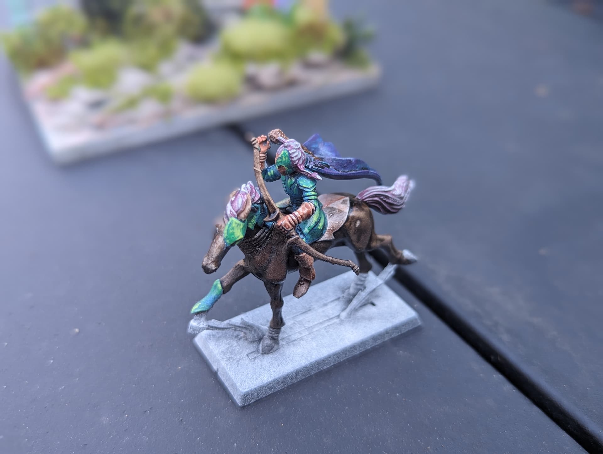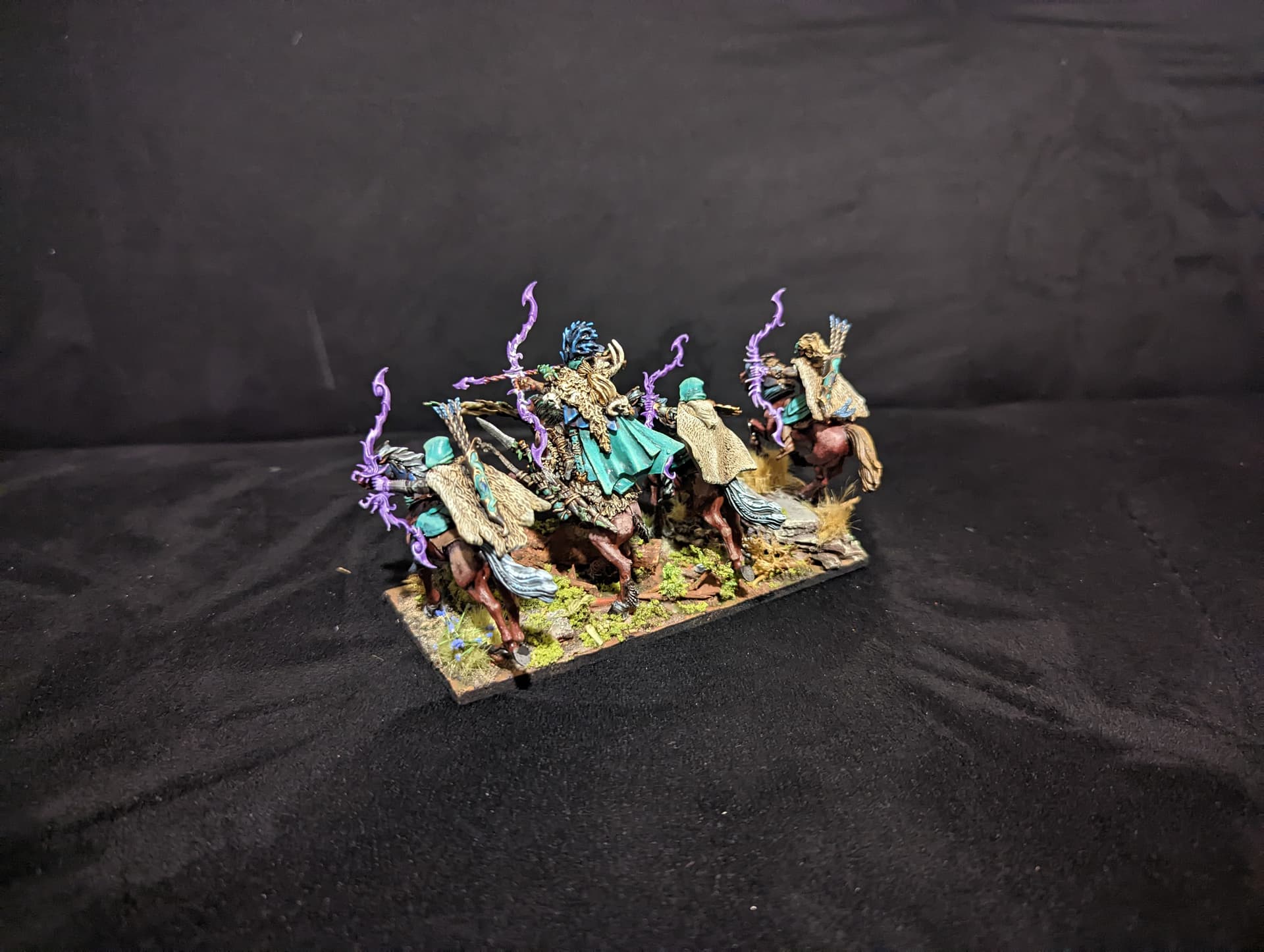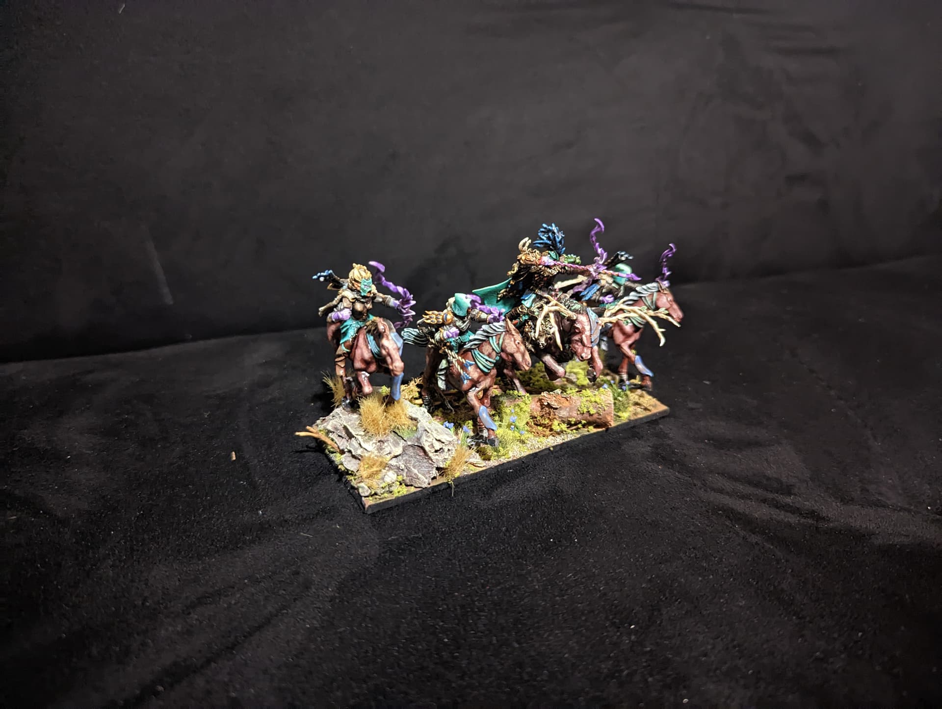 Mainline cav are GW Wood Elf light cav with Tzaangor Skyfire bows.