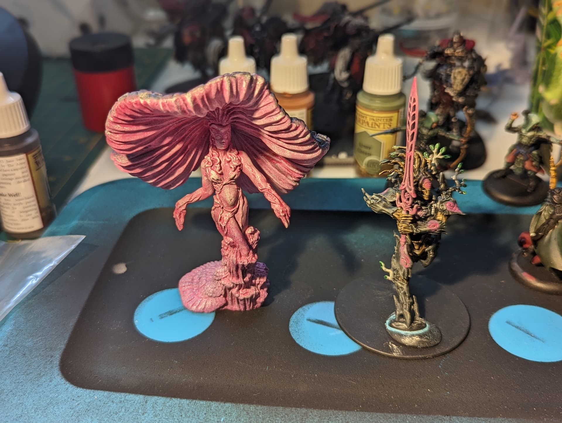 Really wanted the mushroom queen to be my Avatar of the Green Lady but she’s just way too big for an infantry base so she’ll be joining the shamblers!
