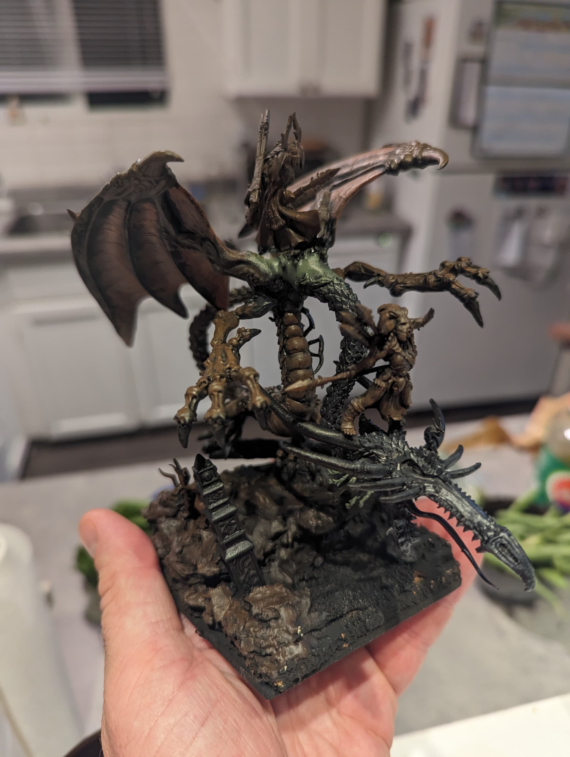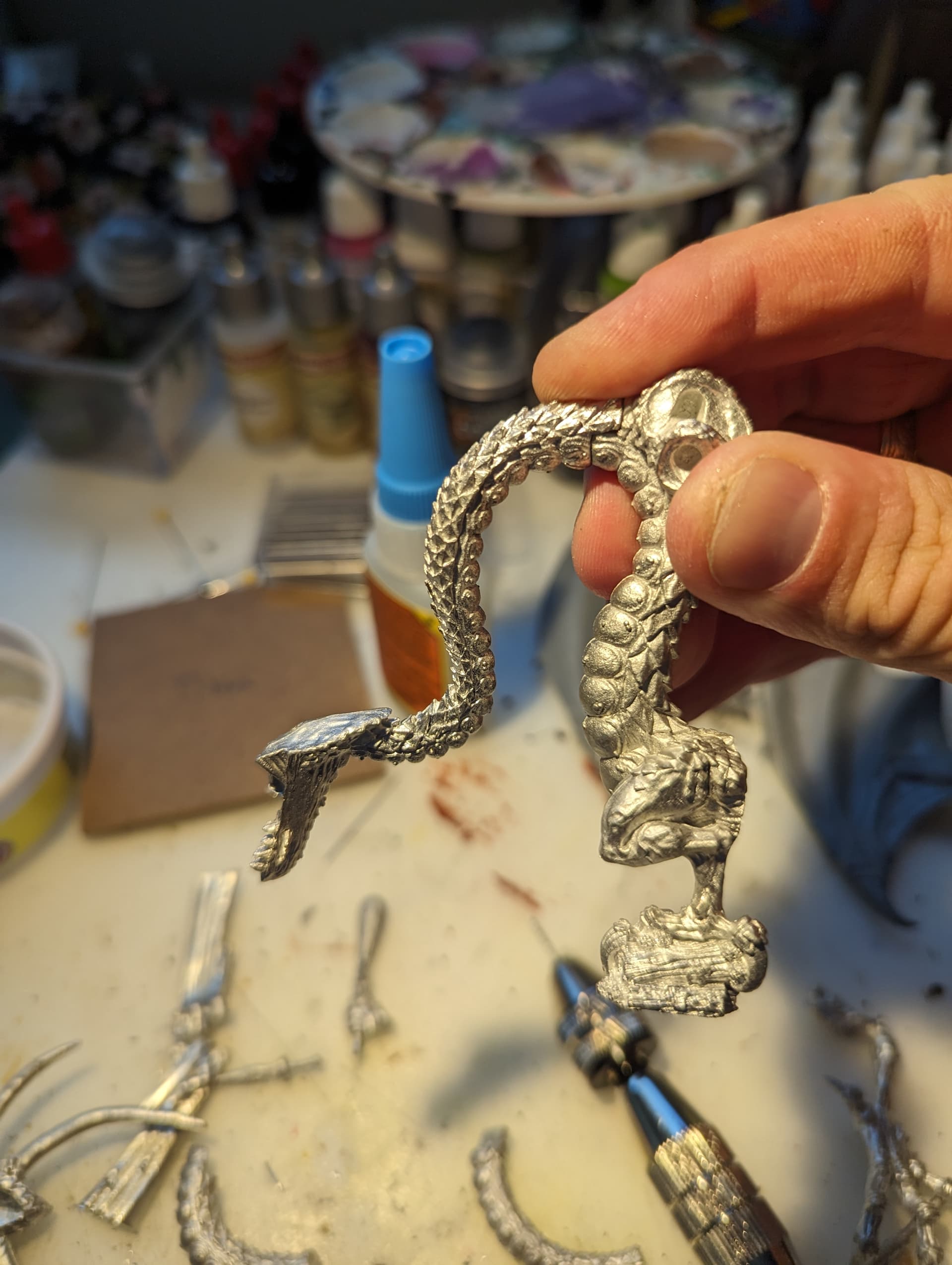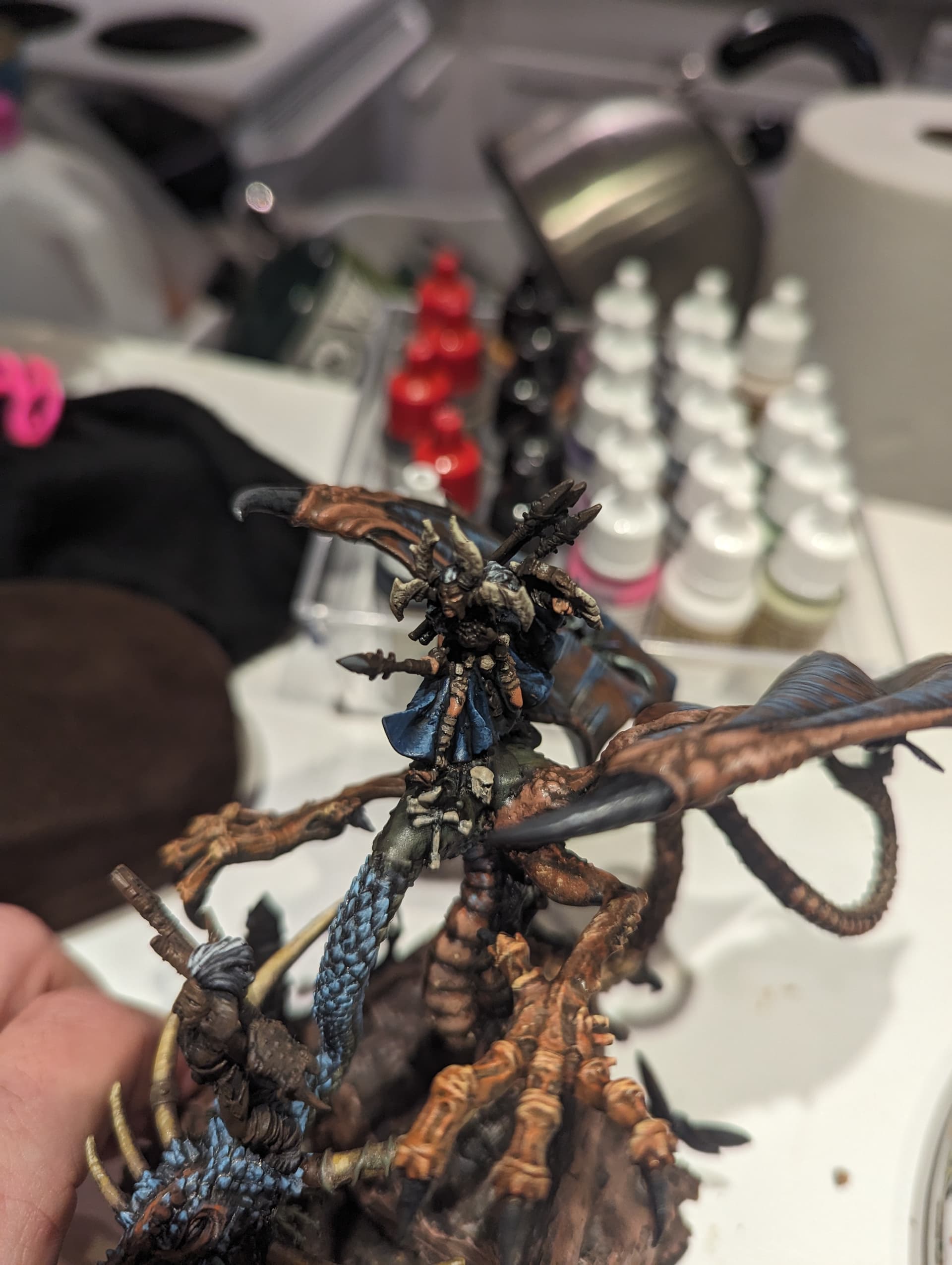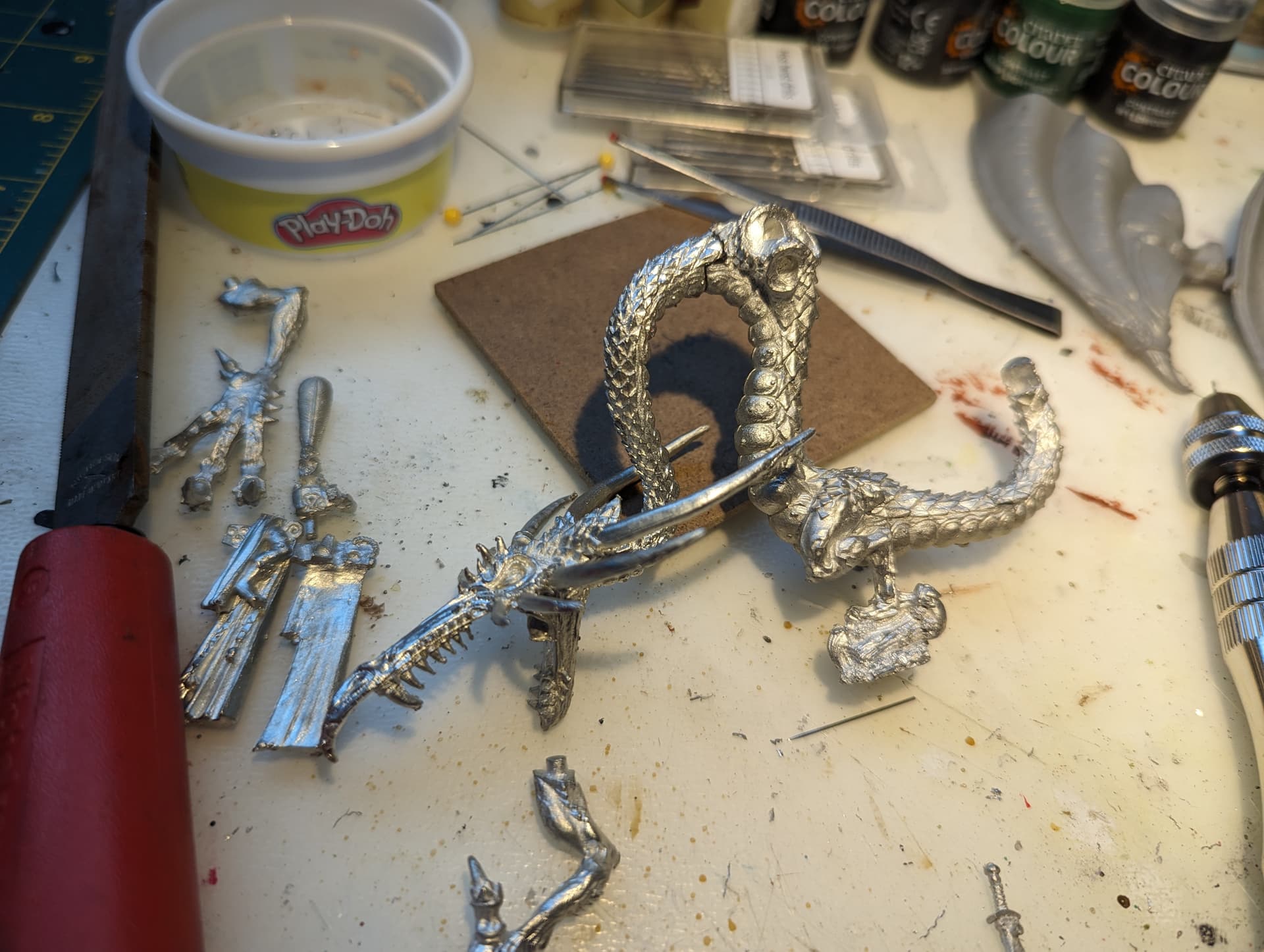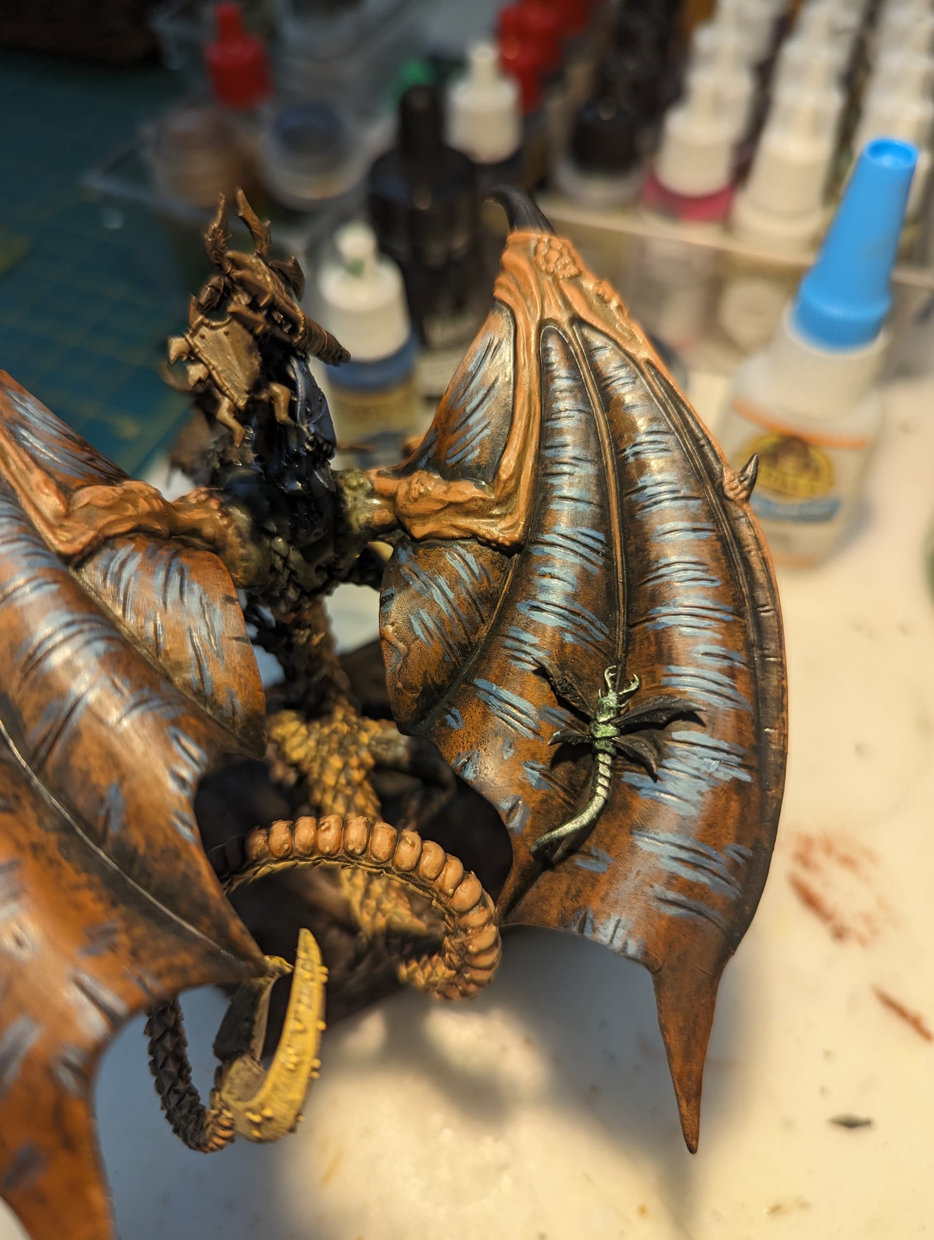 I’m pretty stoked that Nuala and the Blood Tracker (Hordes Circle Orboros) worked as they retain my nod to the old Sisters of Twilight, Naestra and Arahan, but they bring a dark and brutal tone that I want to convey with this model. The dragon is going to be a bit of a bog beast and they fit that style I’m going for.