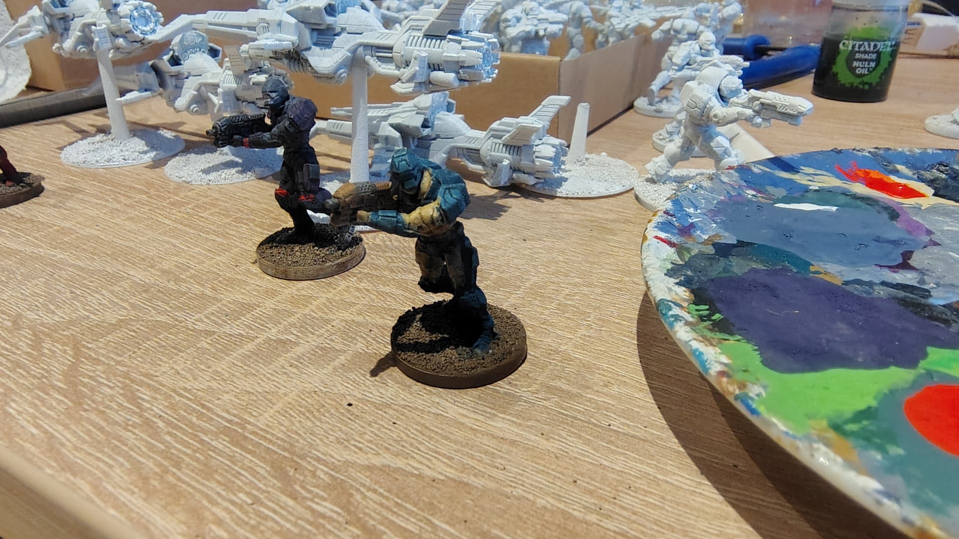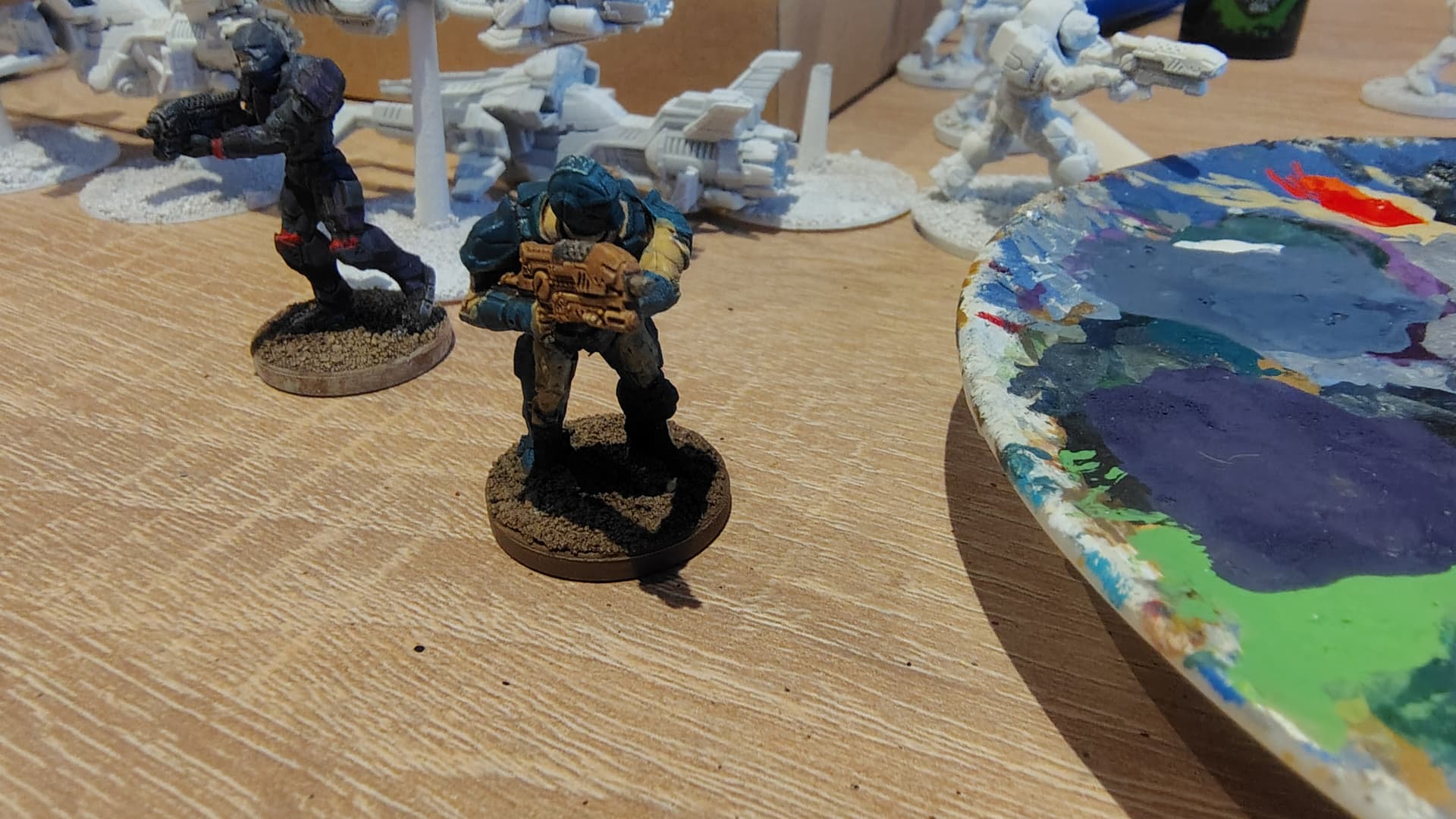 #3 Abyssal Turquise and Dark Sand. Gun in Tan Earth with metal parts. Washed with Agrax Earthsade.