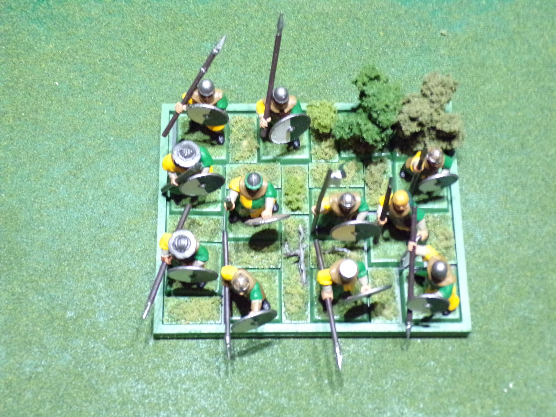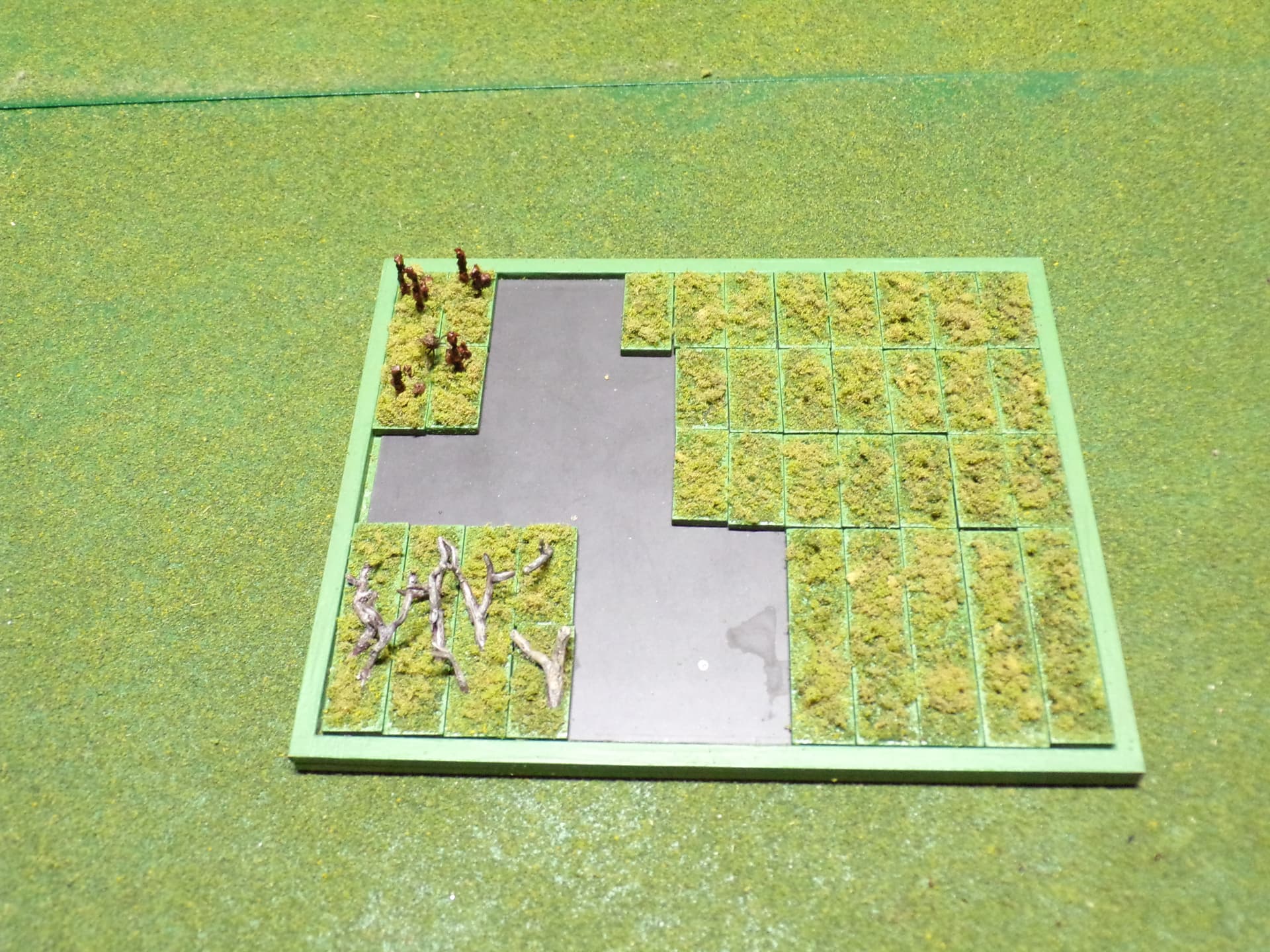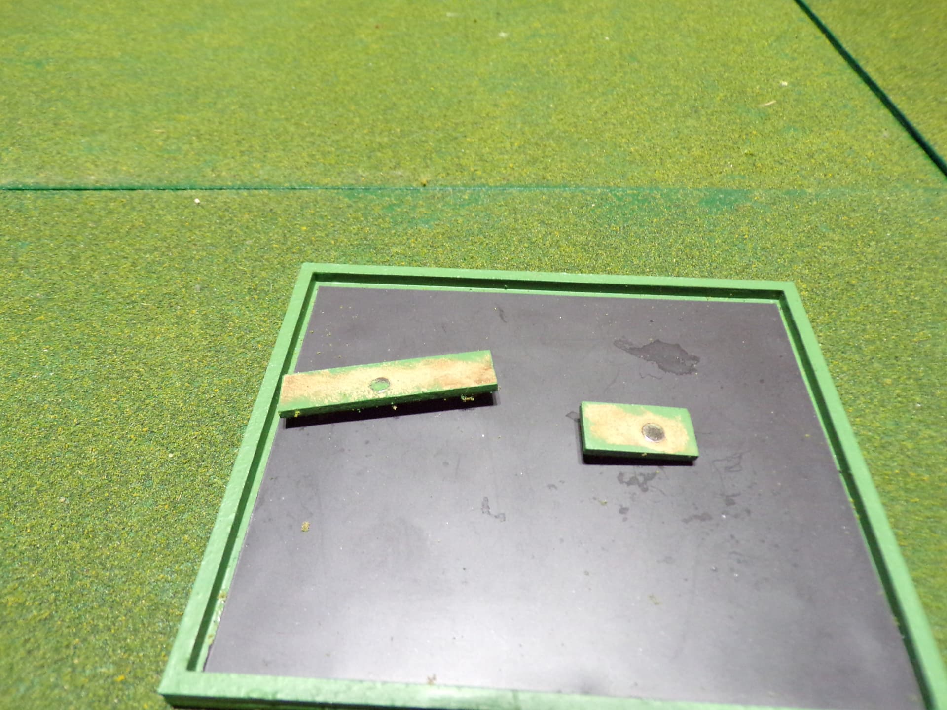 The figures are on magnetised 20 x 20 mm bases, and the spacers are magnetised laser cut hardboard in standard 20 x 20 mm, 20 x 10 mm or 40 x 10 mm sizes. You can buy sheets of laser cut hardboard on eBay.