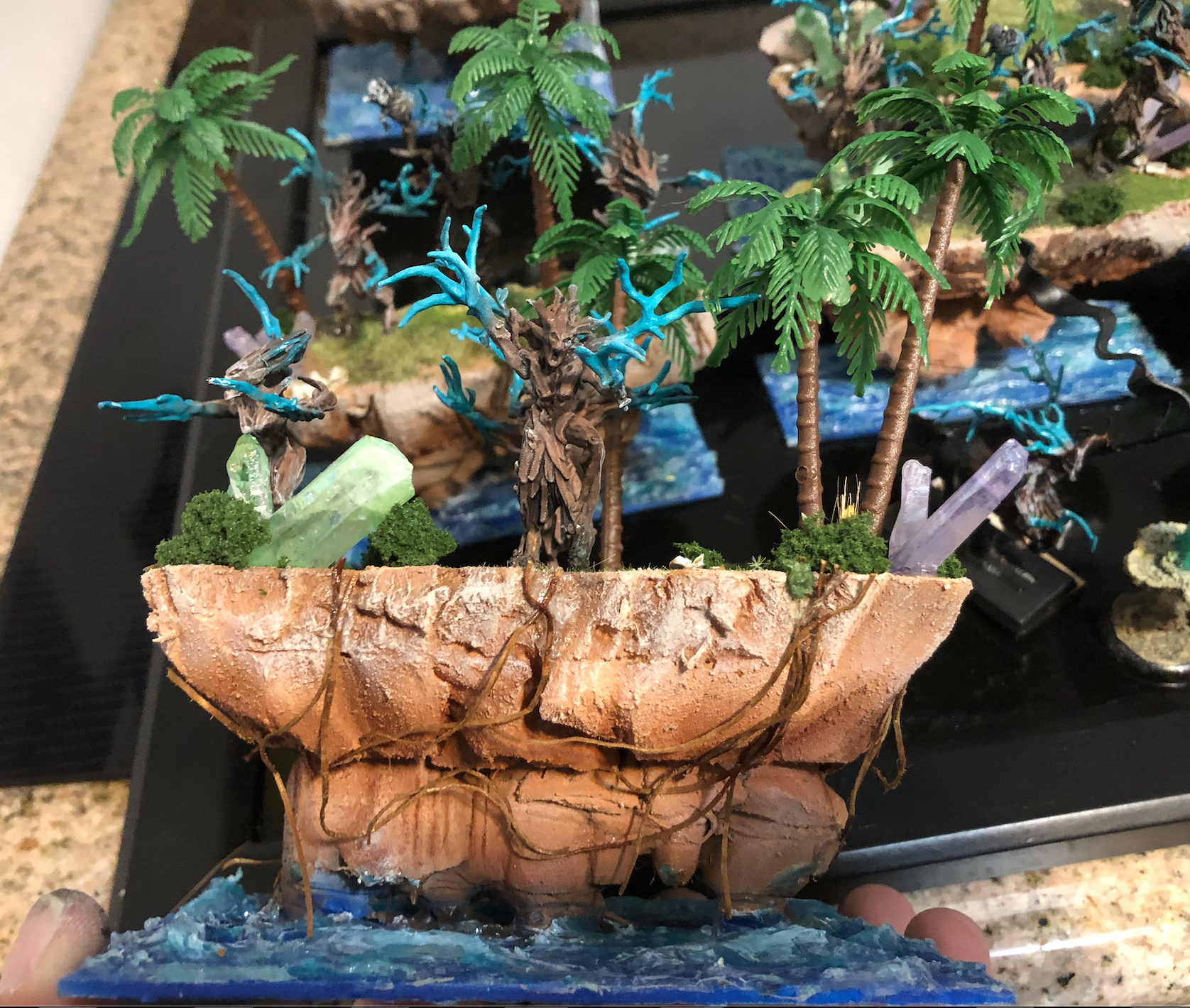Then started on painting. and decorating. Im still working on them, but Im about to put roots and Palm trees on next. likely some crystals on the underside as well.