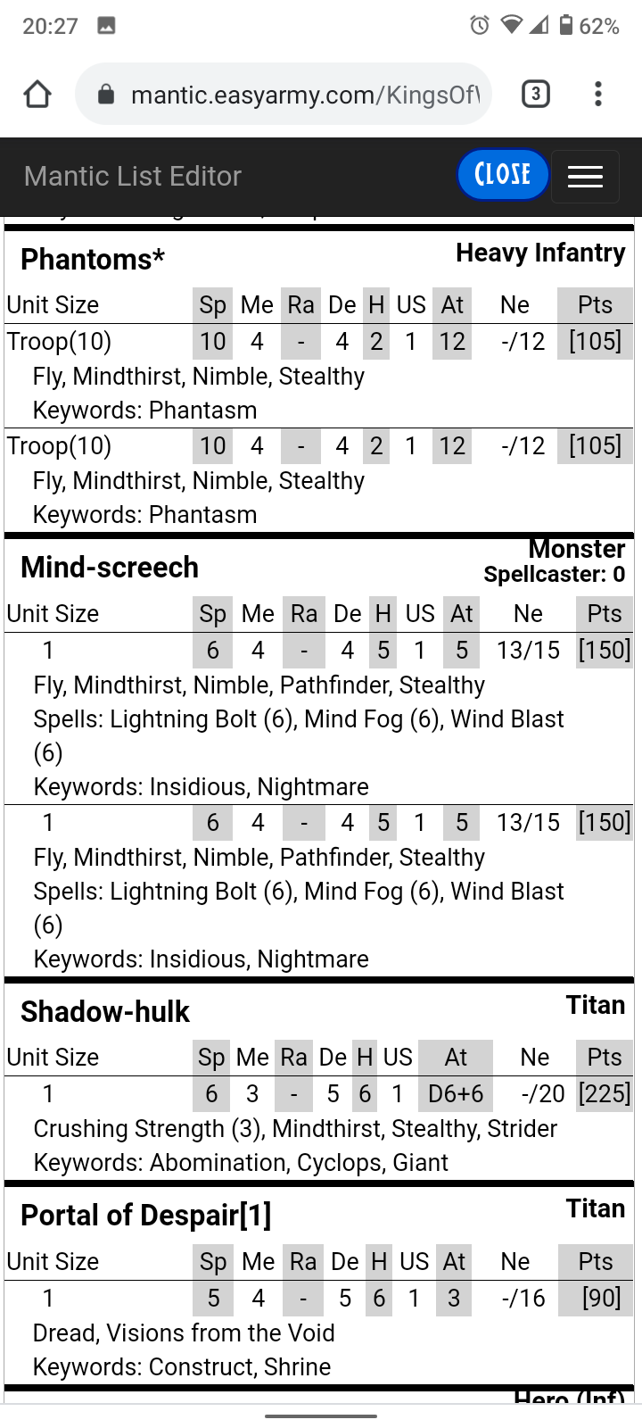 But I ‘gain’ the Tree Shamblers. I had them described by a clubmate as Hot Garbage but I think that a bit too far