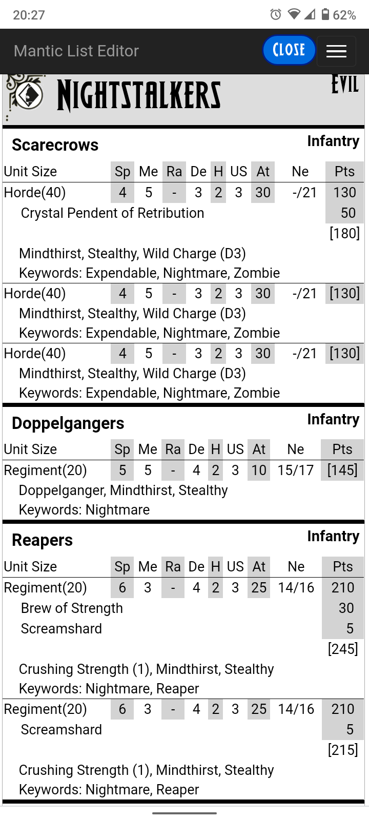 Here is my 1st list with Nightstalkers under 3rd ed.