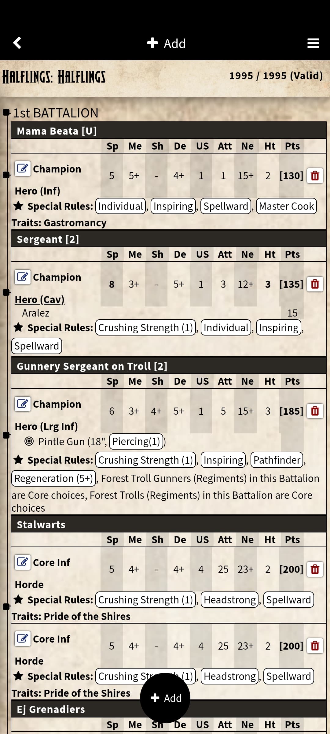 Yeah, not Infantry and nor do they have Muster or Pride if the Shires traits.