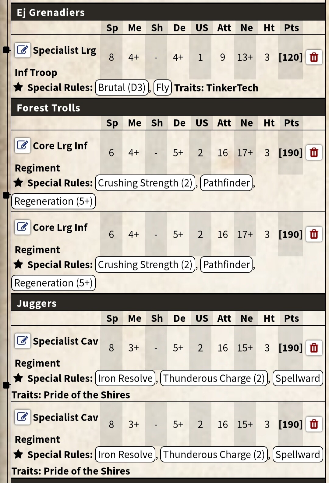 If we go up to 2500 Points for 4th Edition i’d give the Engineer Inspiring and then either buy a bunch of items or ad another Troll Regiment.
