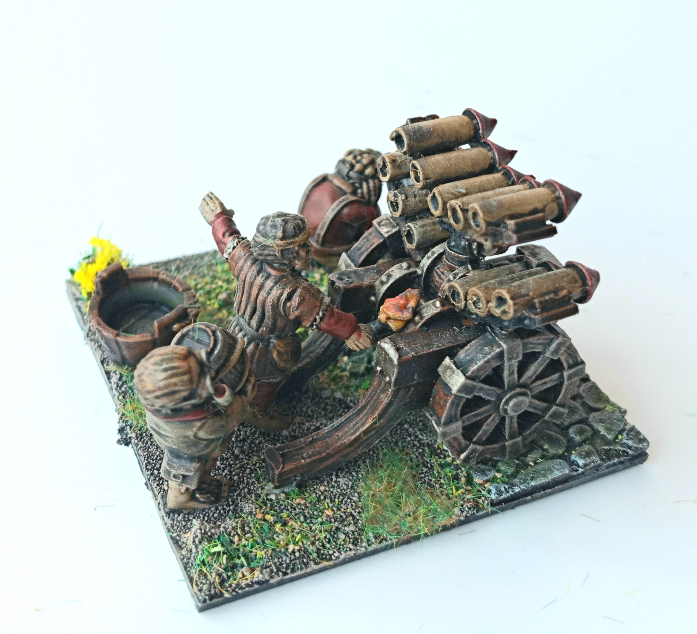 Hotpot launcher. Use is dependant on the war engine options the halfling gets, otherwise it’s an organ gun for LoR