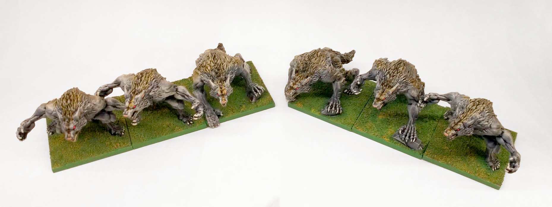 Assembly was easy- three of the wolves were one piece, the others had separate arms. Obviously this will be a pro to some and a con to others who value more poseability. There are three sculpts, but two are very similar.