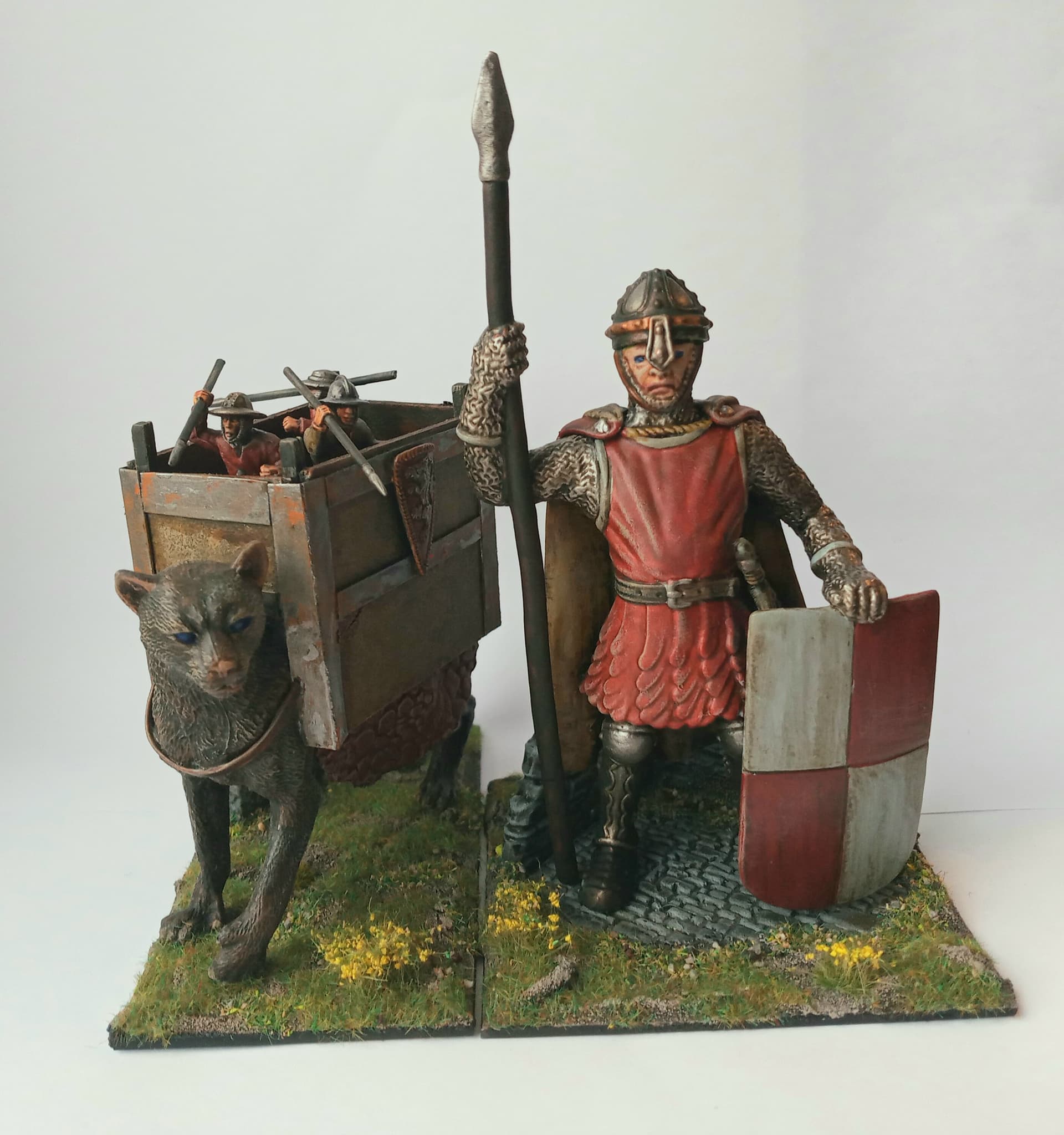 Had odd idea to use GSW cobbles roller and milliput to do dragon/reptile skin caparison. Rest of howdah will be balsa/matchsticks