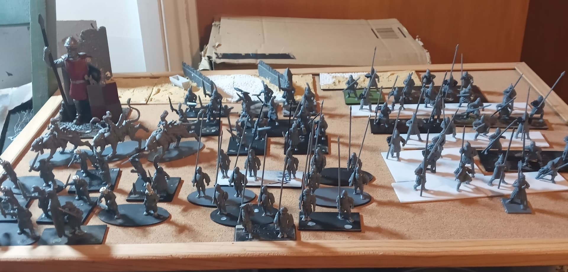 WiP of a pike horde /2 reg base and another monarch/giant (being prepped for Monster March!) - have a slightly insane idea of running 3 giants and a Slayer monarch as a battle group