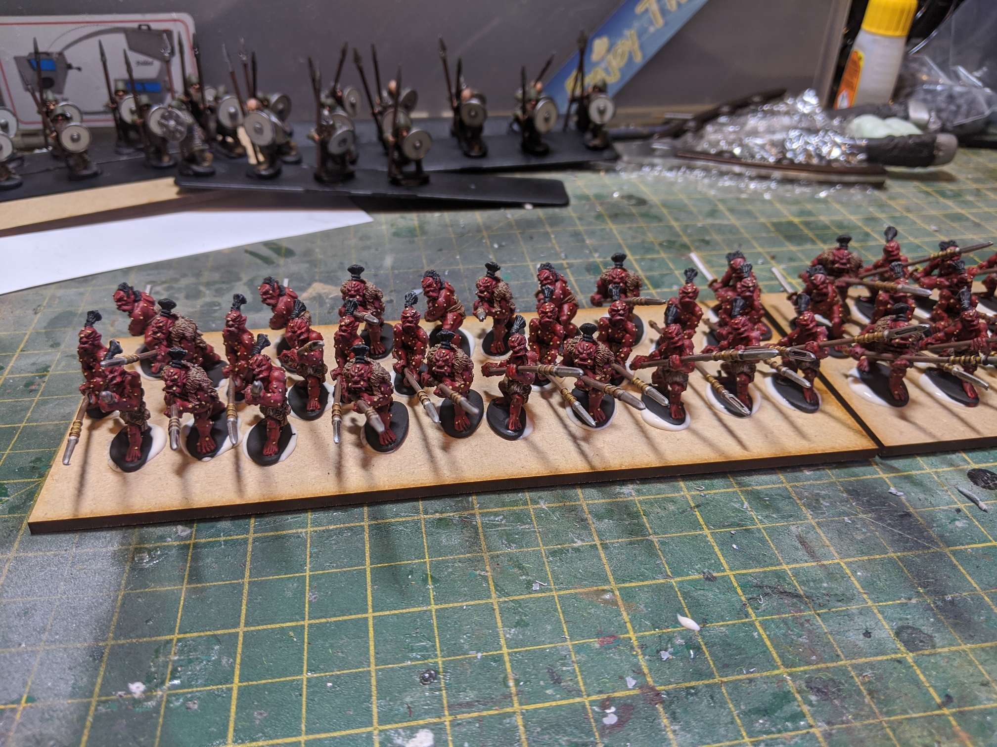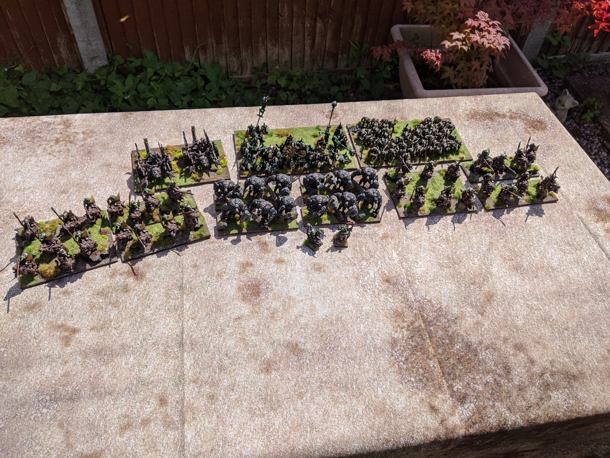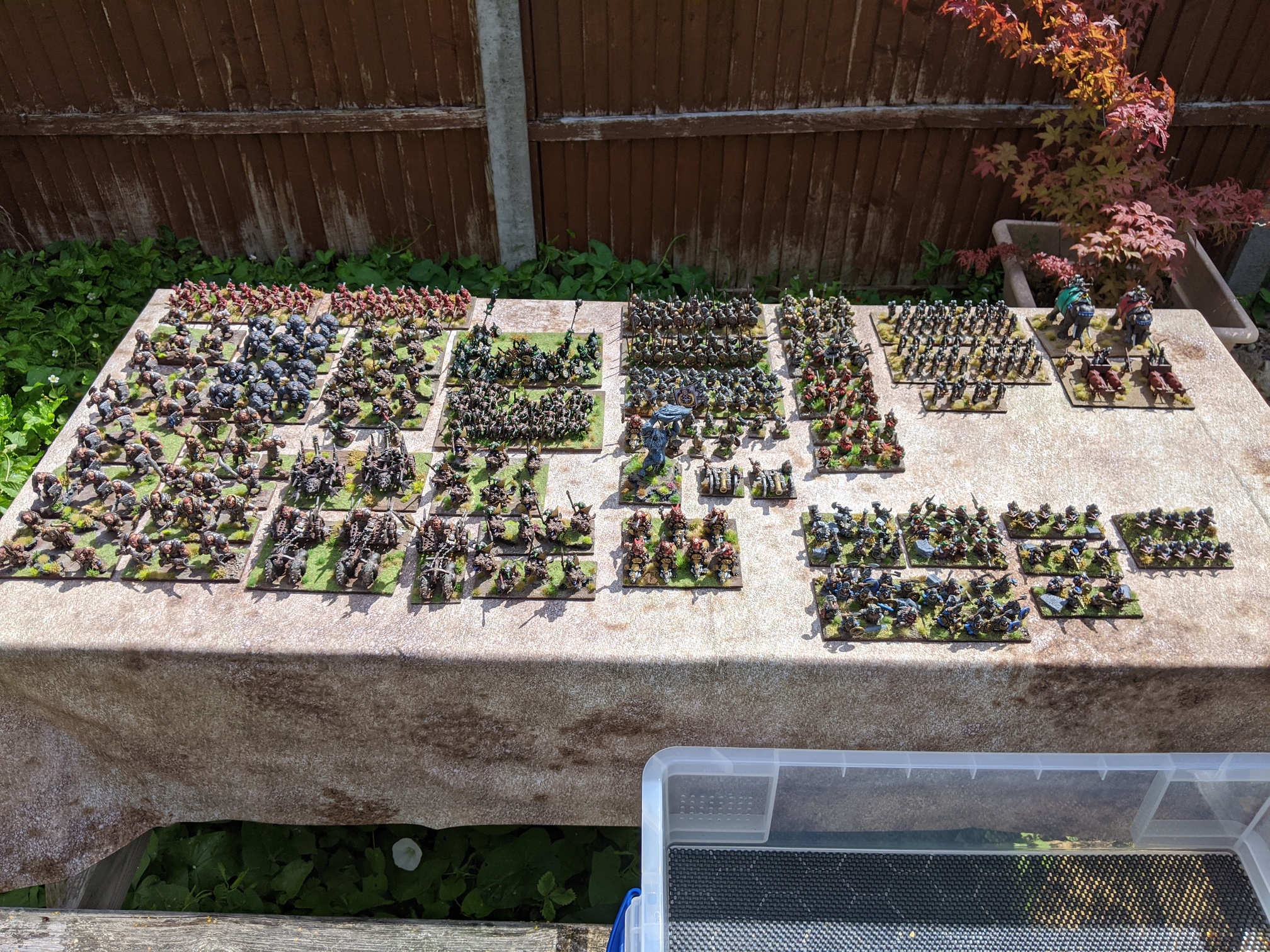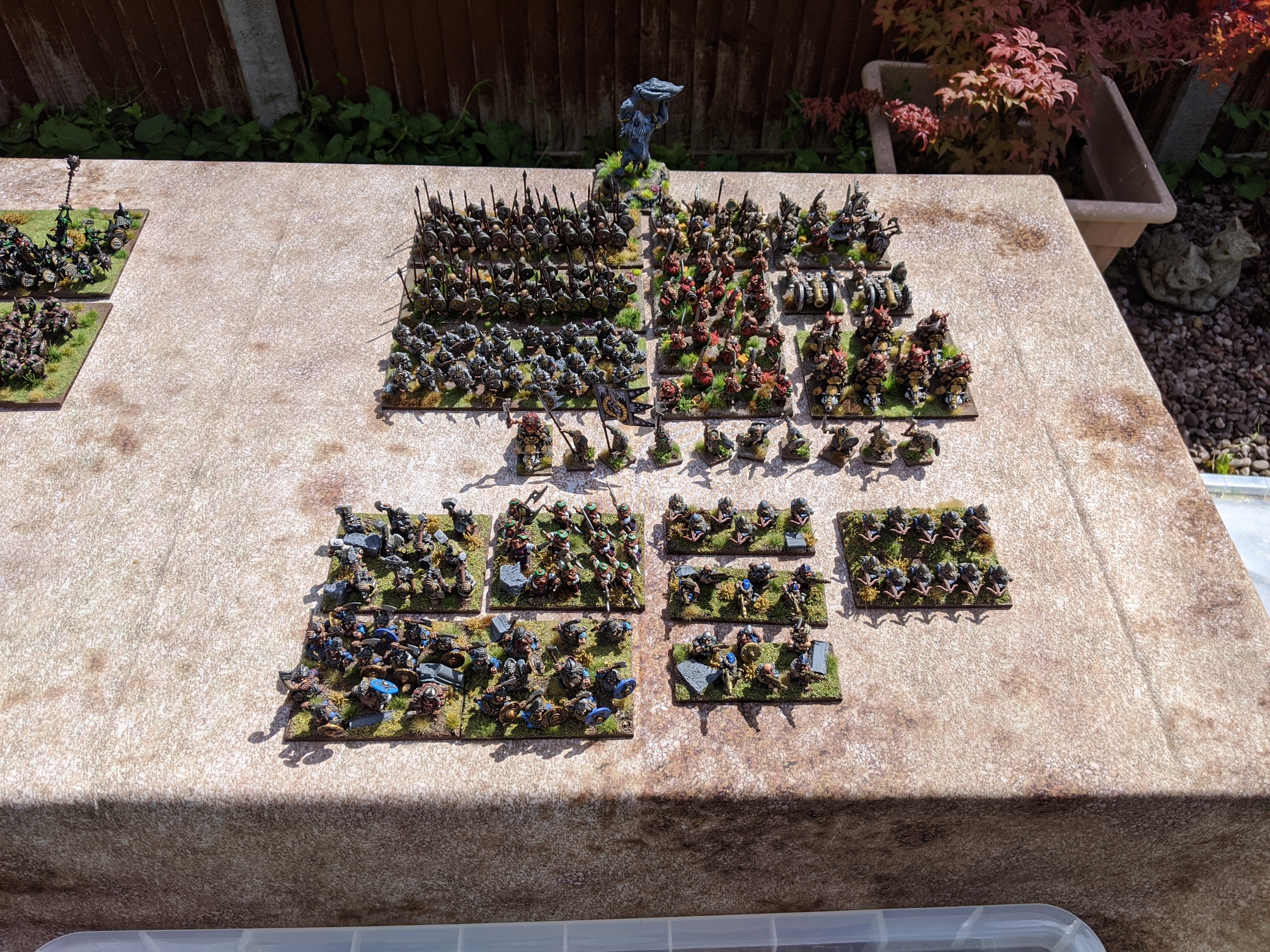 I finally got a sunny day to grab all my completed figures and take some pictures. Apart from the few units Infront of my Dwarven hero’s everything else has been completed since April.