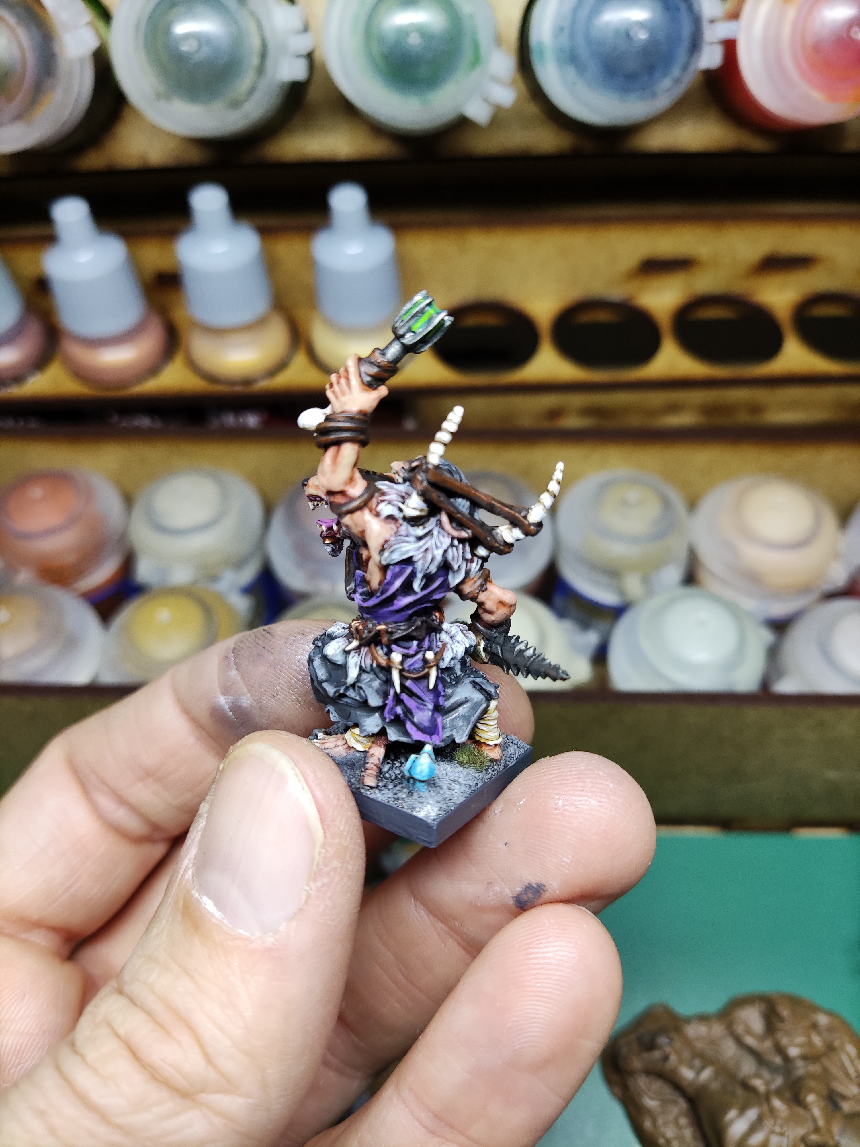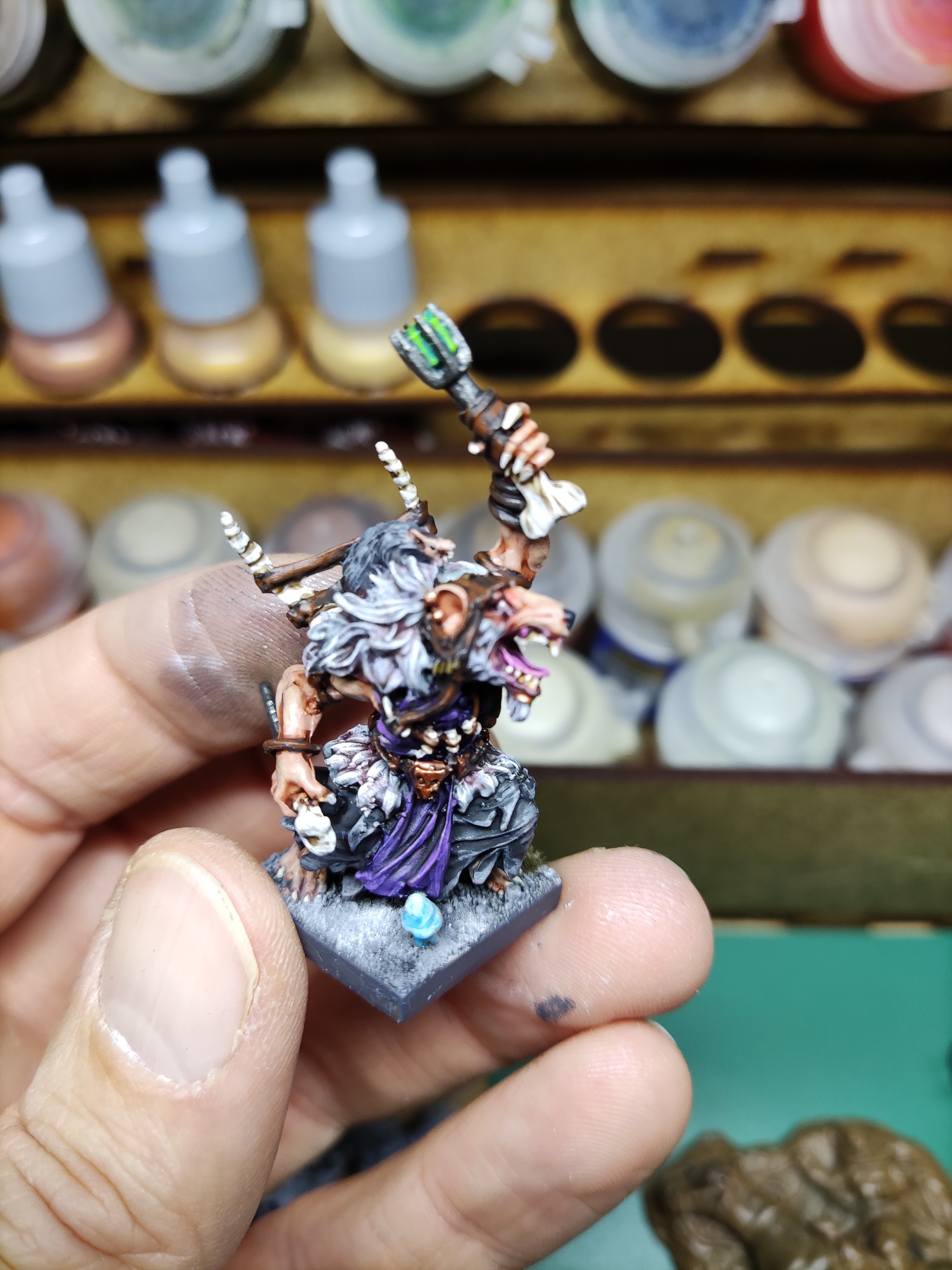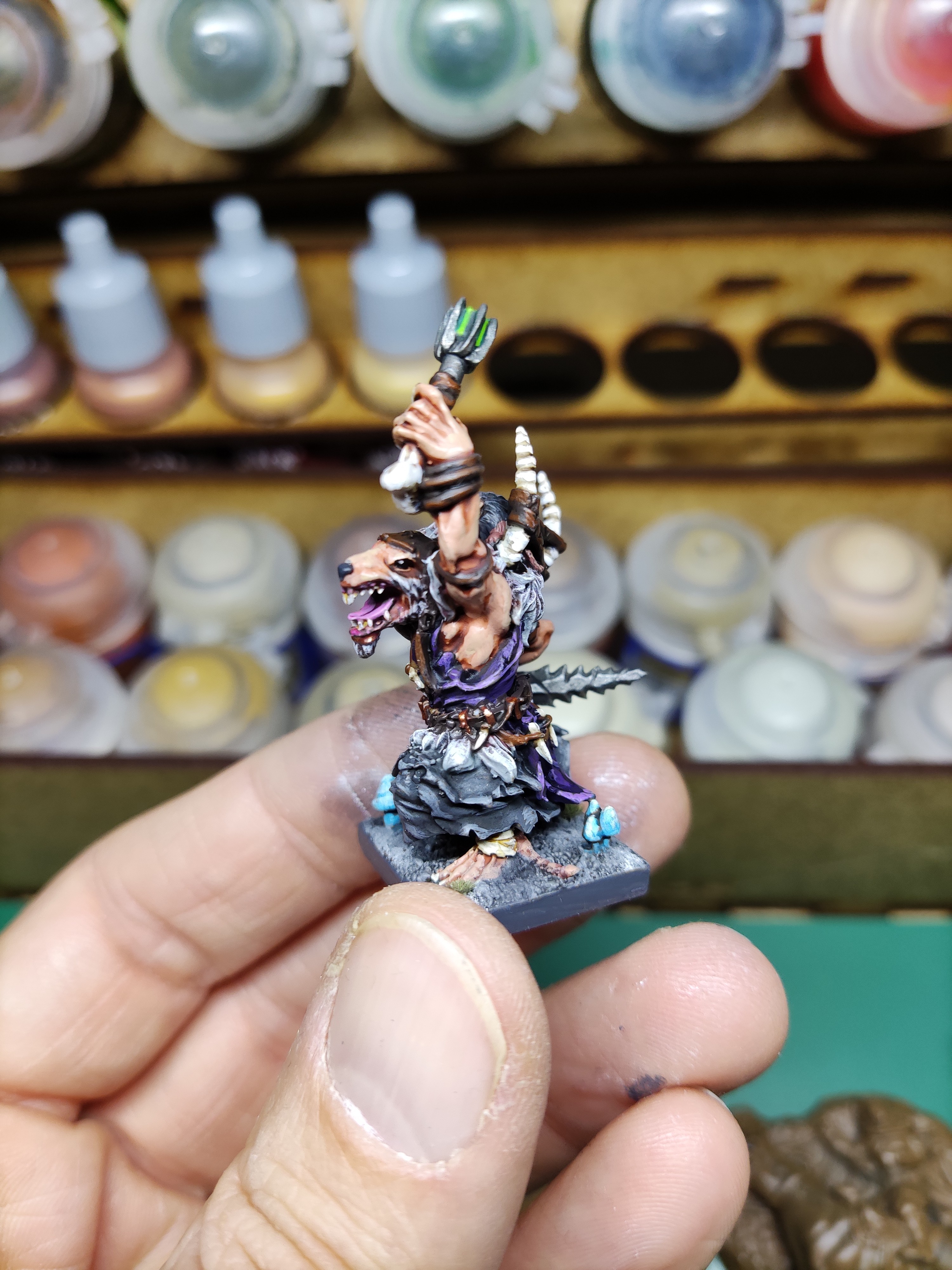 I tried to implement the background of Twitch with the blinded eye, a reddisch tint on the fur and missing teeth. I really like the model, it was a blast from the past, painting fantasy rats again. Skaven were my first WHFB army some 25y ago.