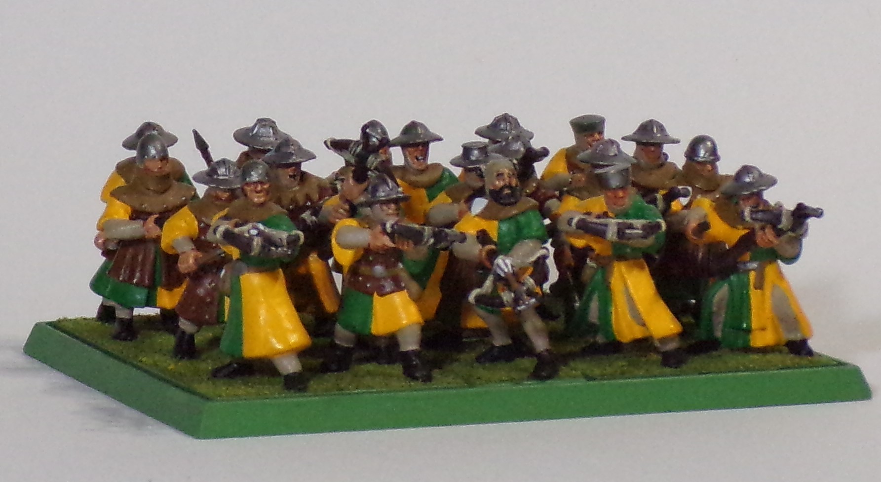 Thanks for your suggestion @HouseElf. I love the Perry sculpts but they are too small. The MOM minis are actually slightly larger than the WFB 6th edition state troops I am using for pikemen and I have had to mount them on a thinner base (2mm rather than 3mm) to even the heights. I’ll check out the Artizan range.