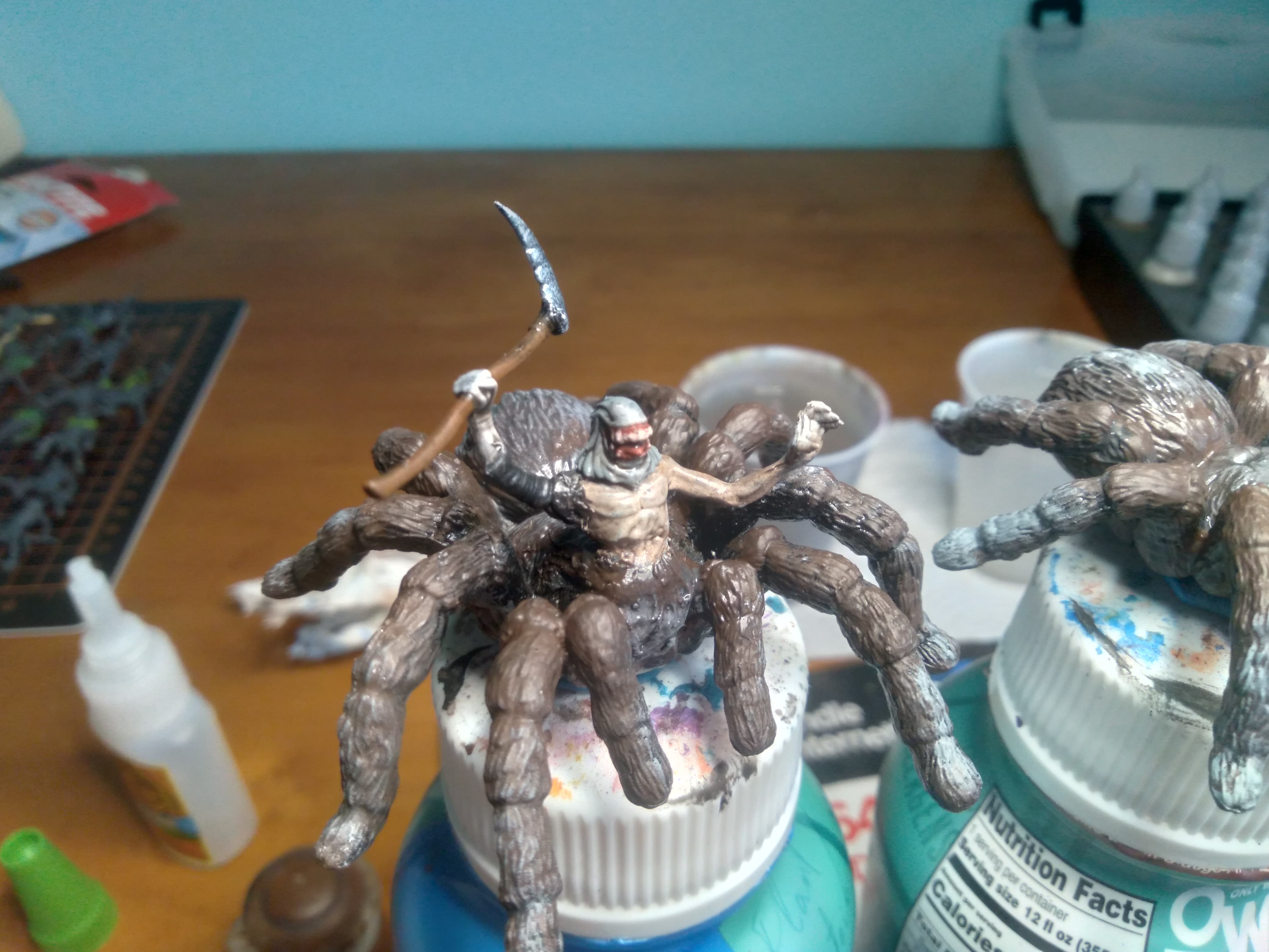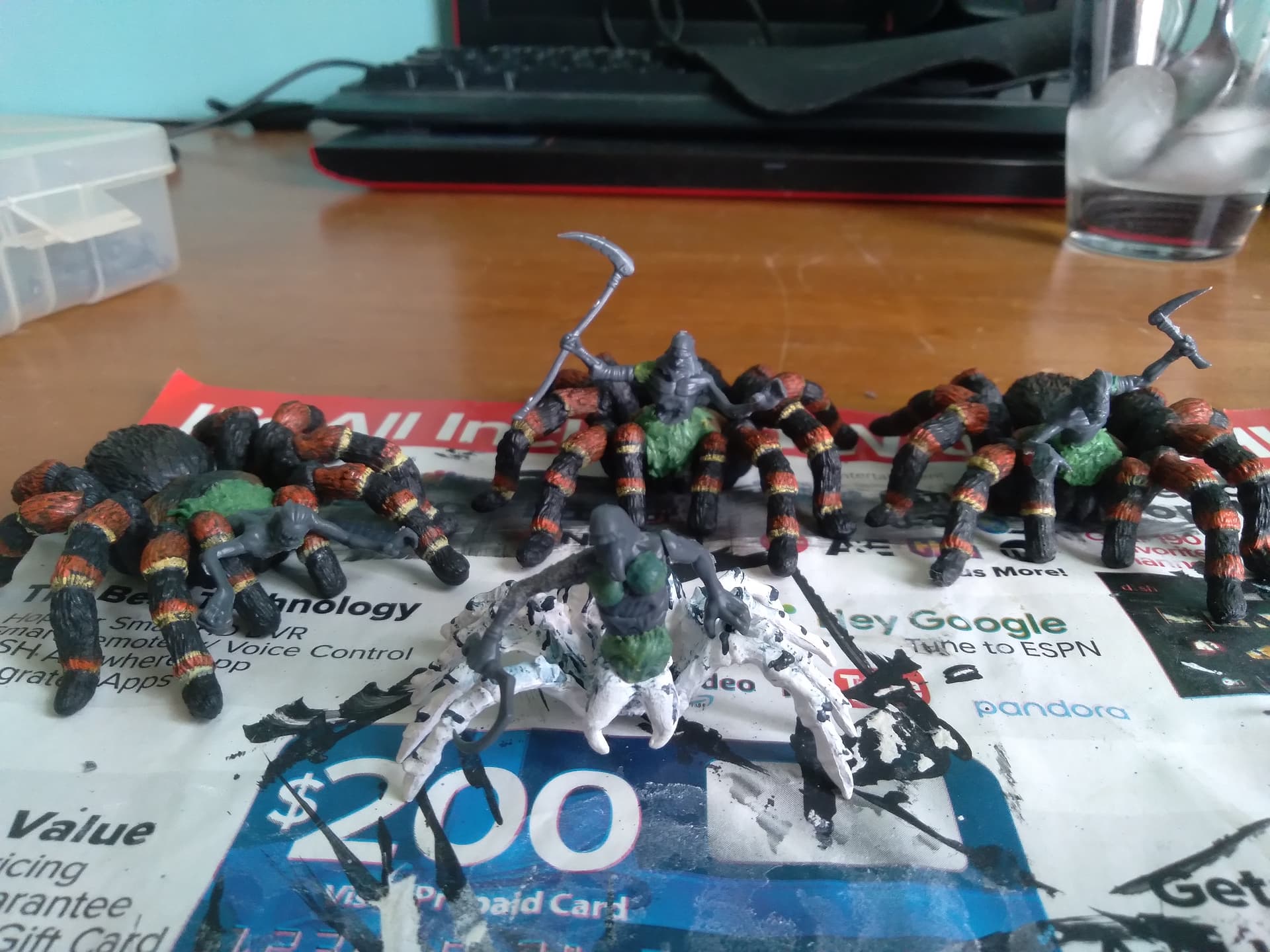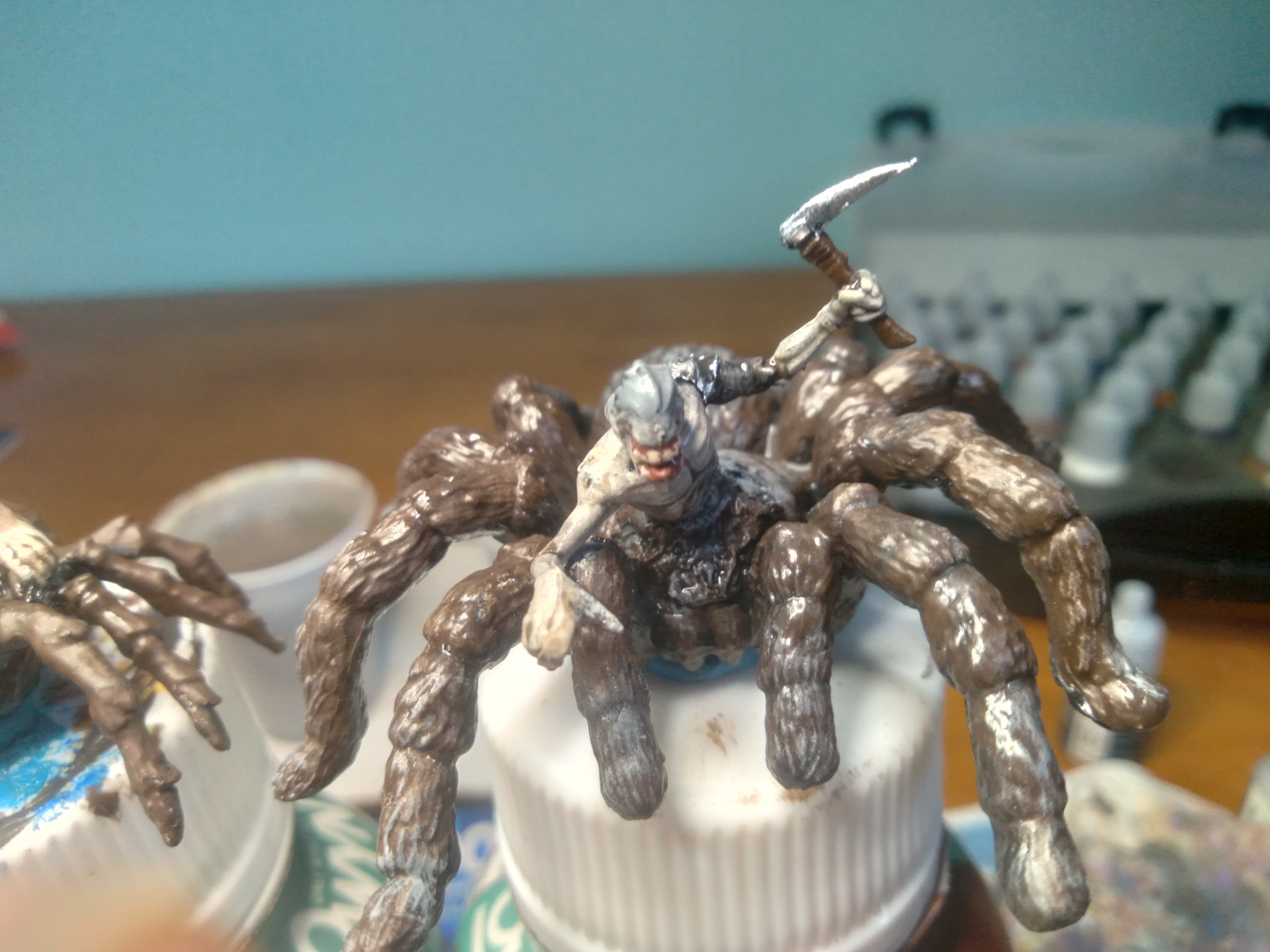 My old horde of fiends (some of you may remember my Gaping Dragon model) was simply too big. I’d been wanting to replace it with properly sized models, and, after seeing some toy spiders at the store I work at, got straight to work kitbashing