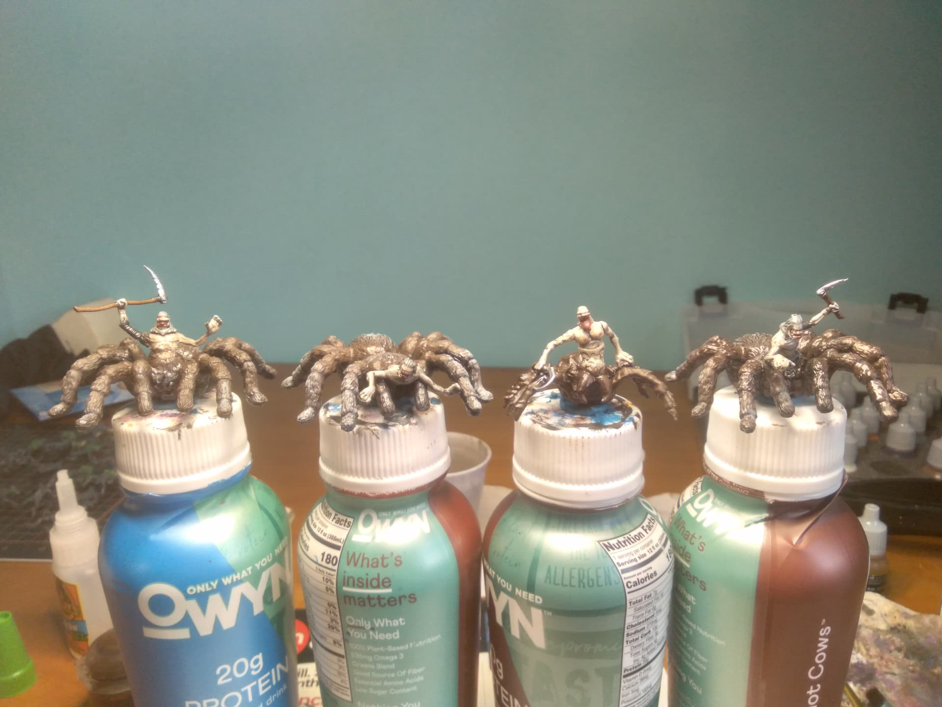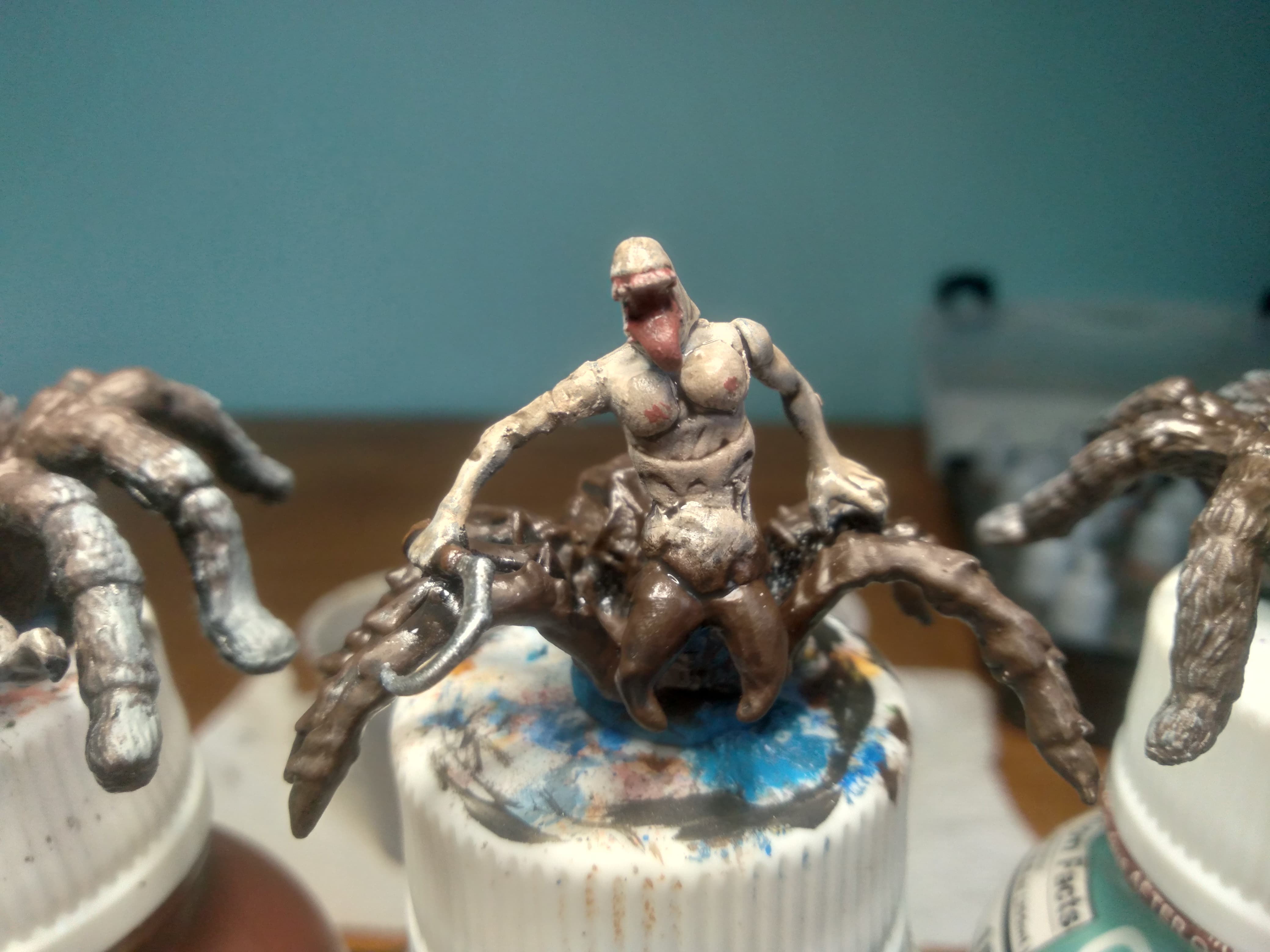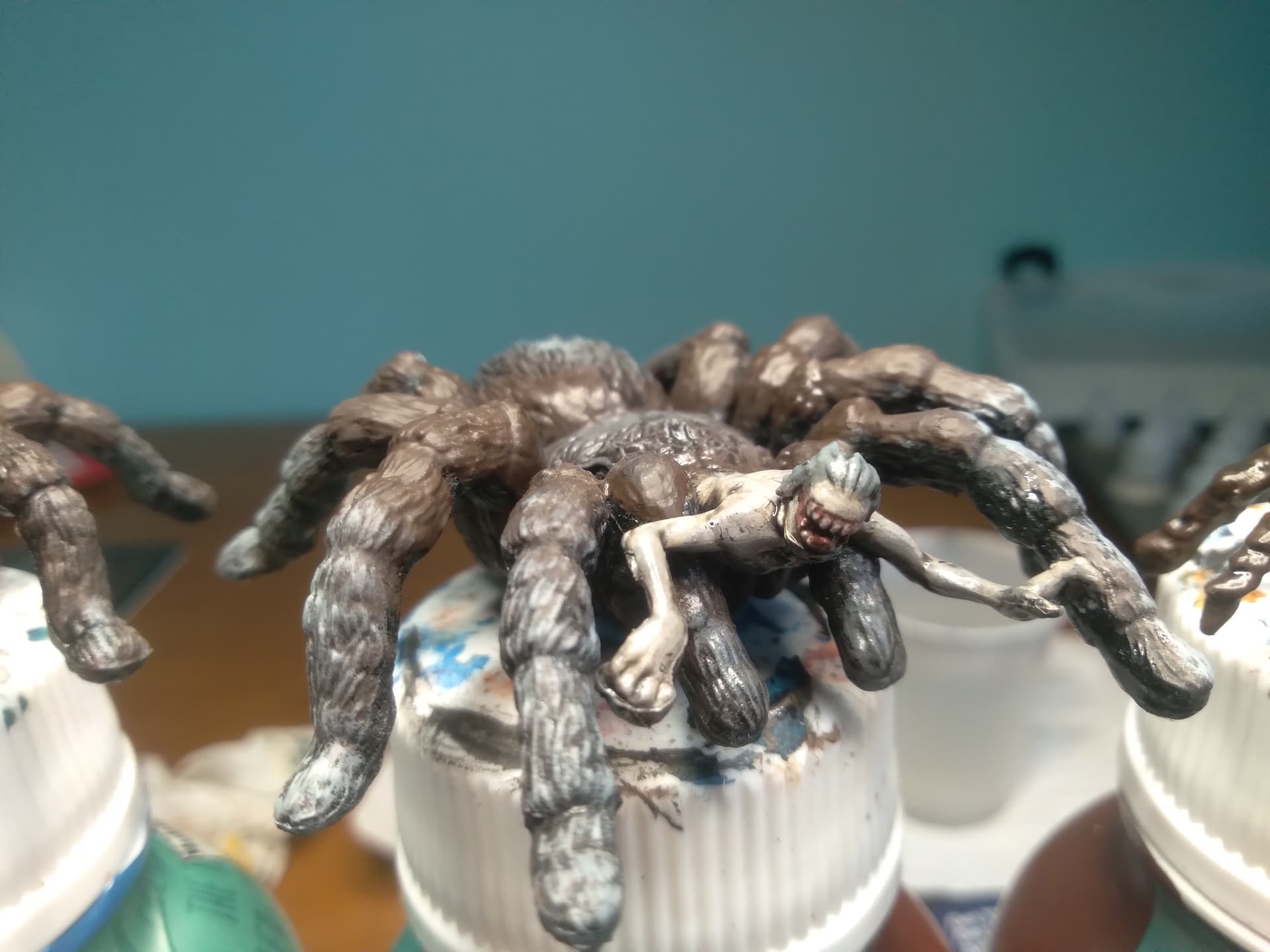 My old horde of fiends (some of you may remember my Gaping Dragon model) was simply too big. I’d been wanting to replace it with properly sized models, and, after seeing some toy spiders at the store I work at, got straight to work kitbashing