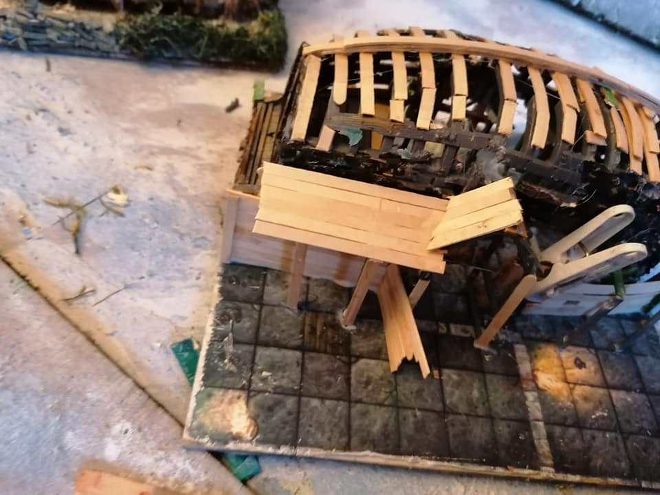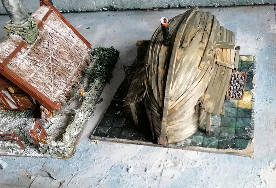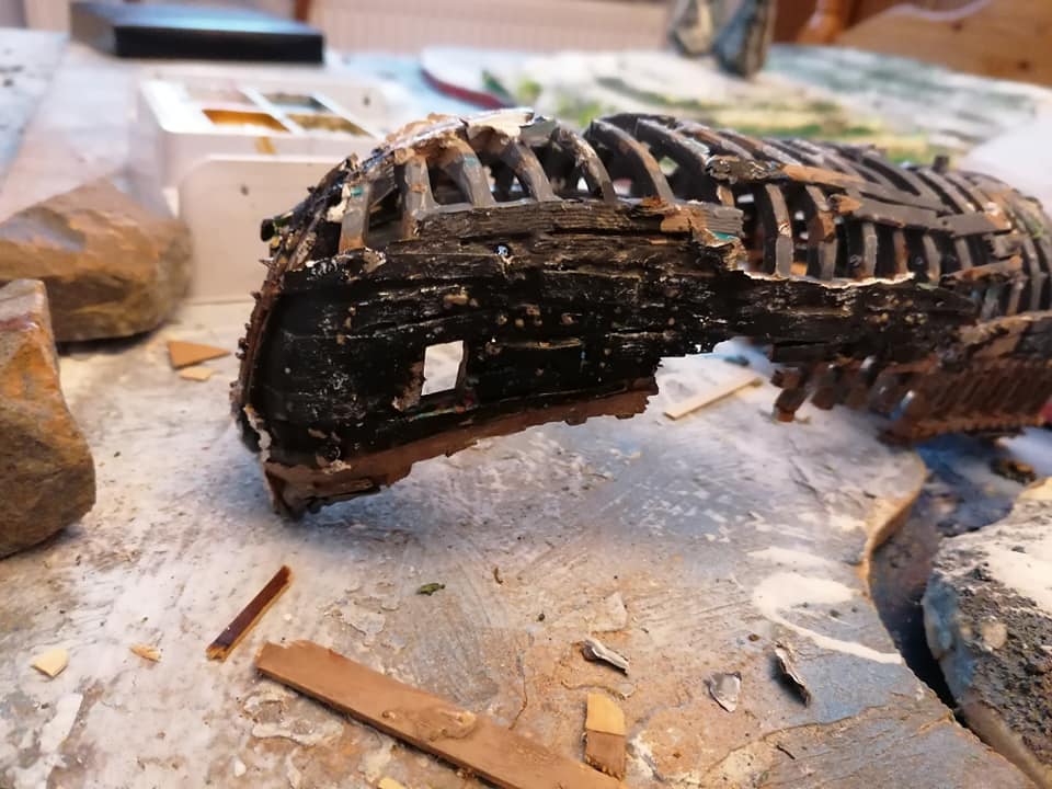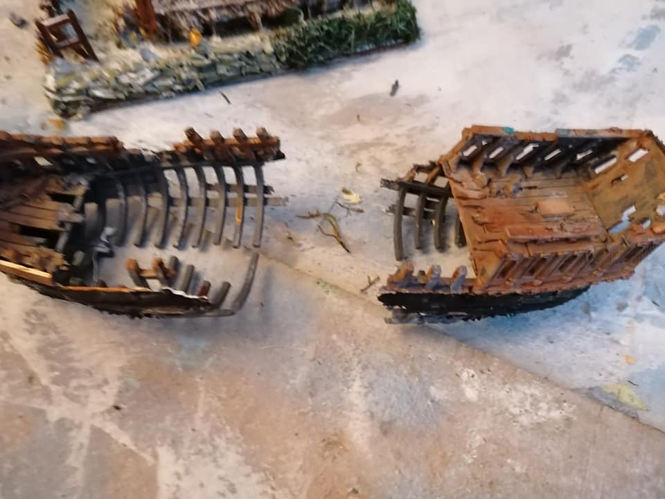My next project is to make this Gloomtide shipwreck model into a Viking longhouse similar to the one at Trellborg. first, I’ll have to rebuild the keel and the hull before building the planking to make it sort of shipshape, before flipping it over and building the walls of the house under it