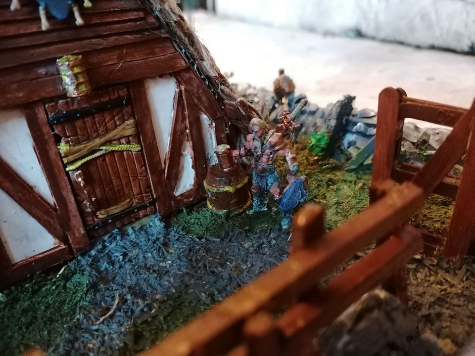 I decided to make the barbarian model a permanent fixture in the diarama, as it’d be no use having an innkeeper without some drunk loitering about