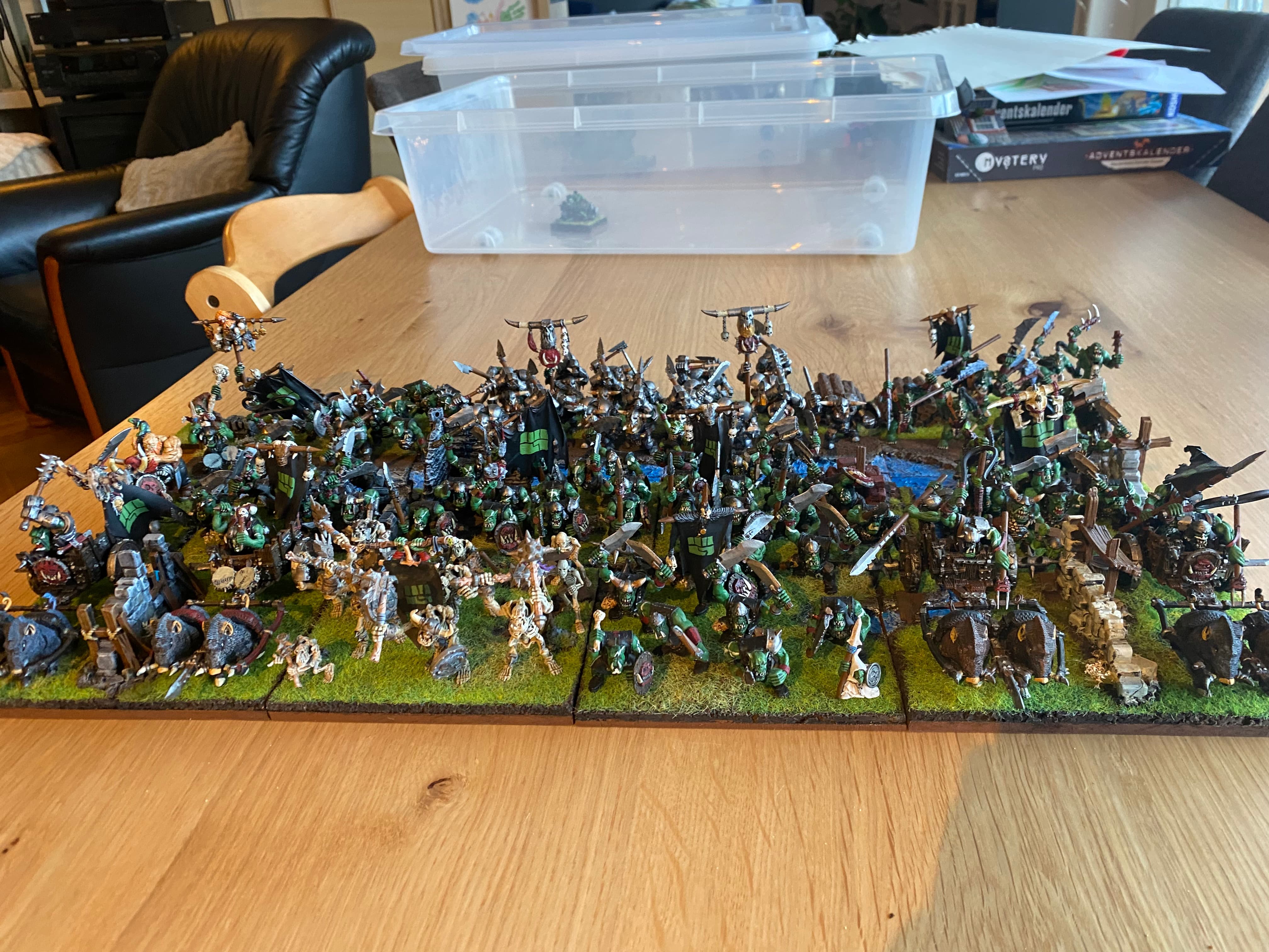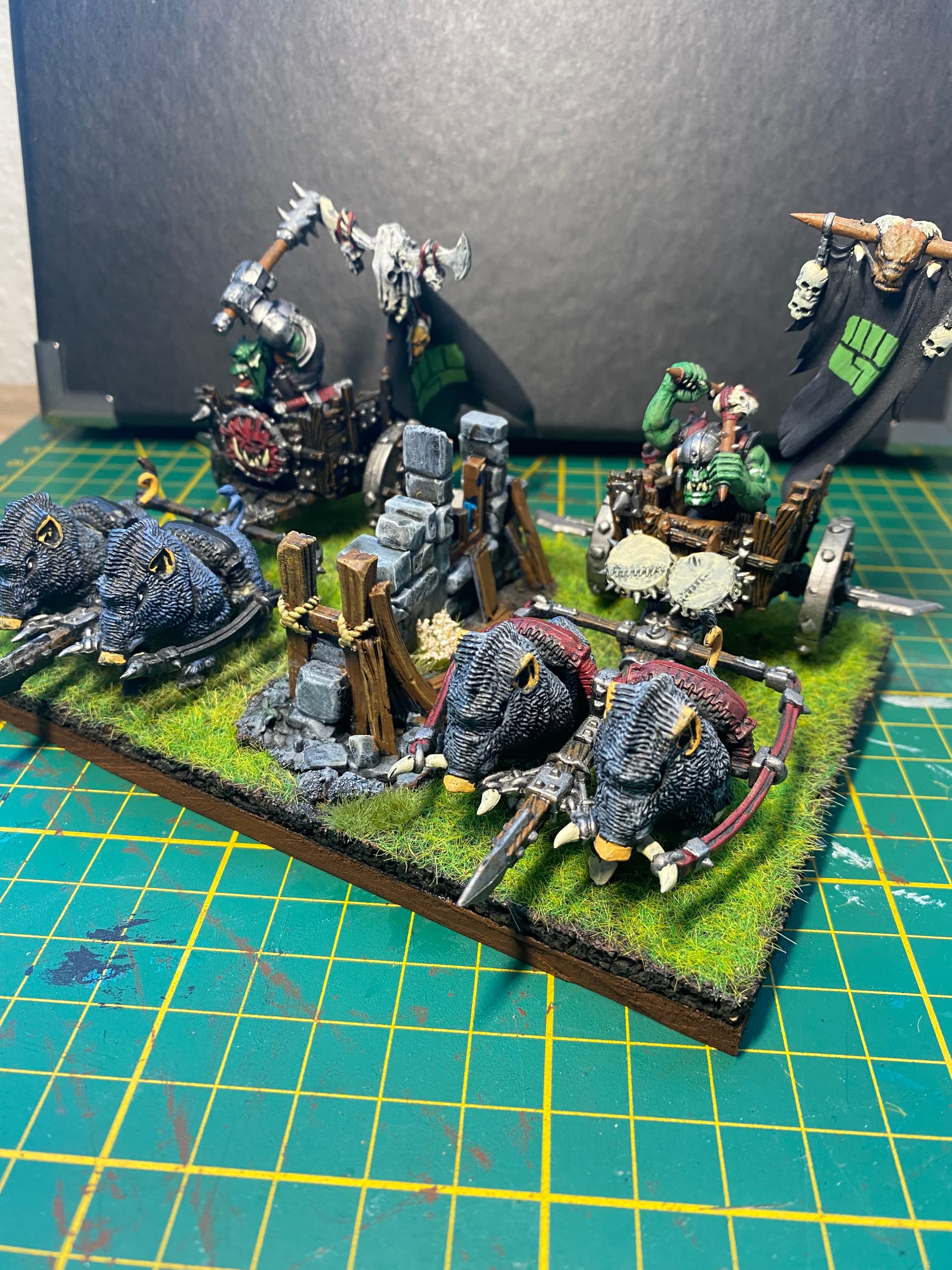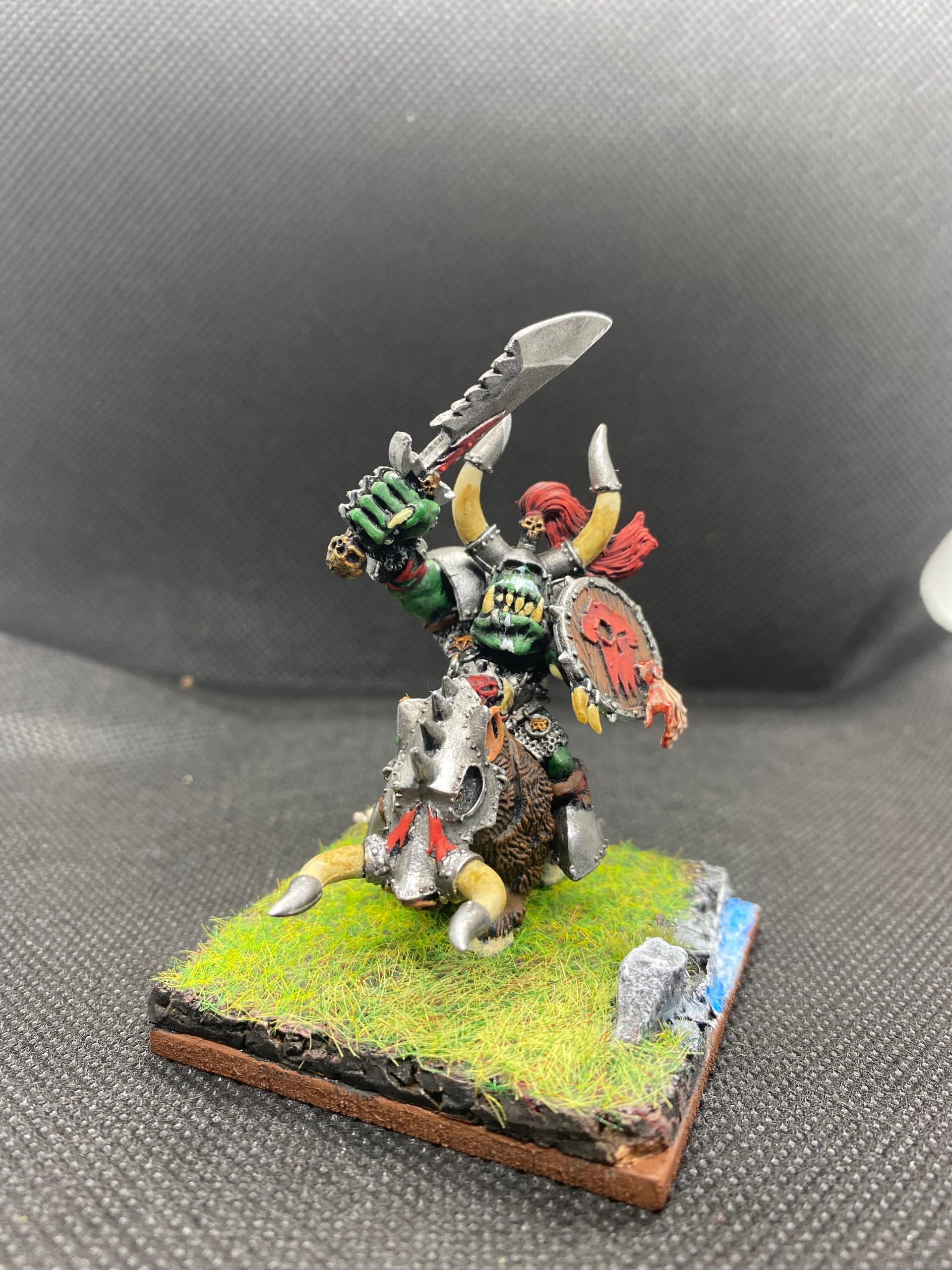 I finished the big beast‘s base. Its rider got a little bit of new paint. There is almost no Orc left to paint (that is built… Never in my lifetime will I be able to paint those, that are not built yet)