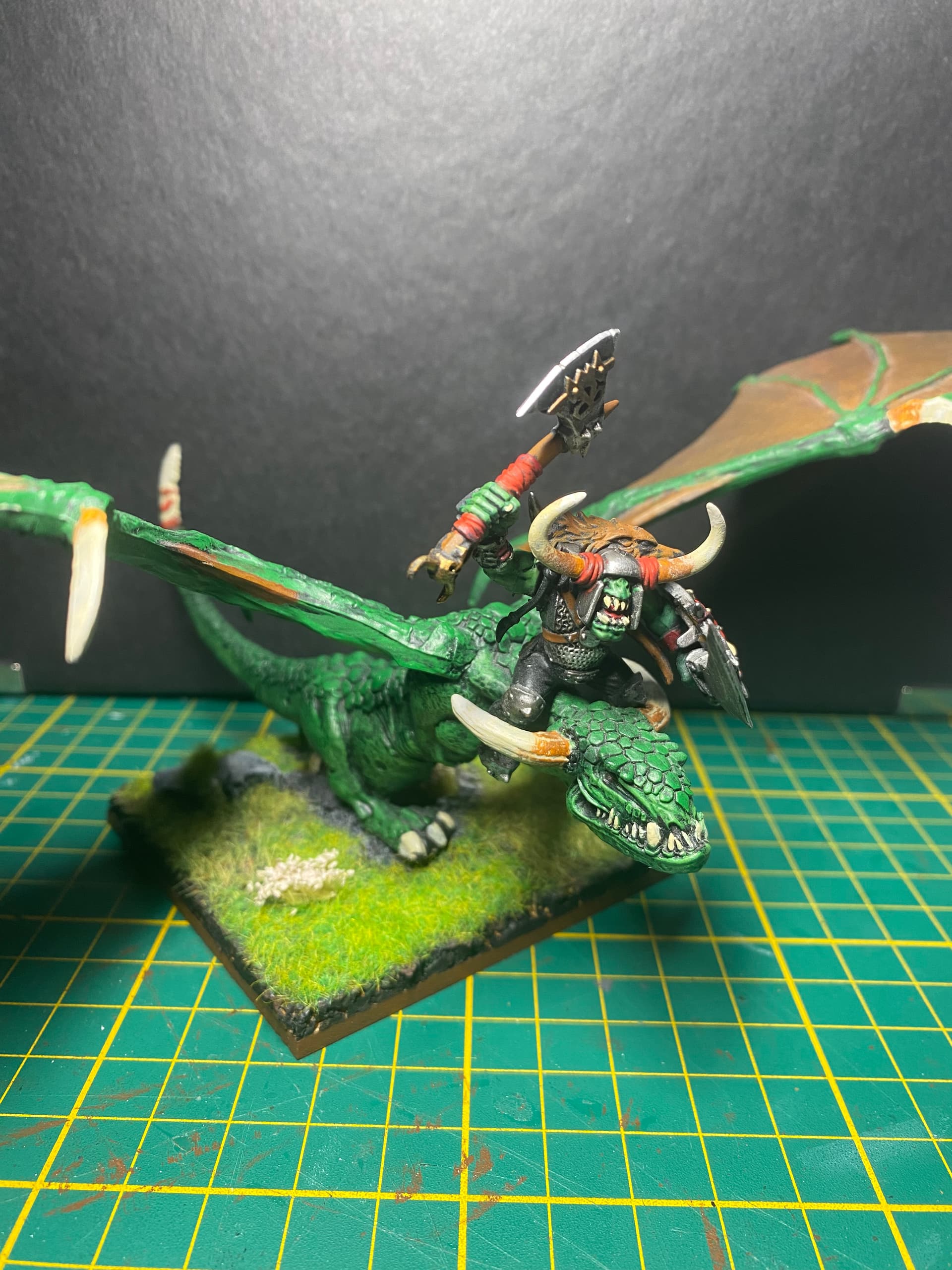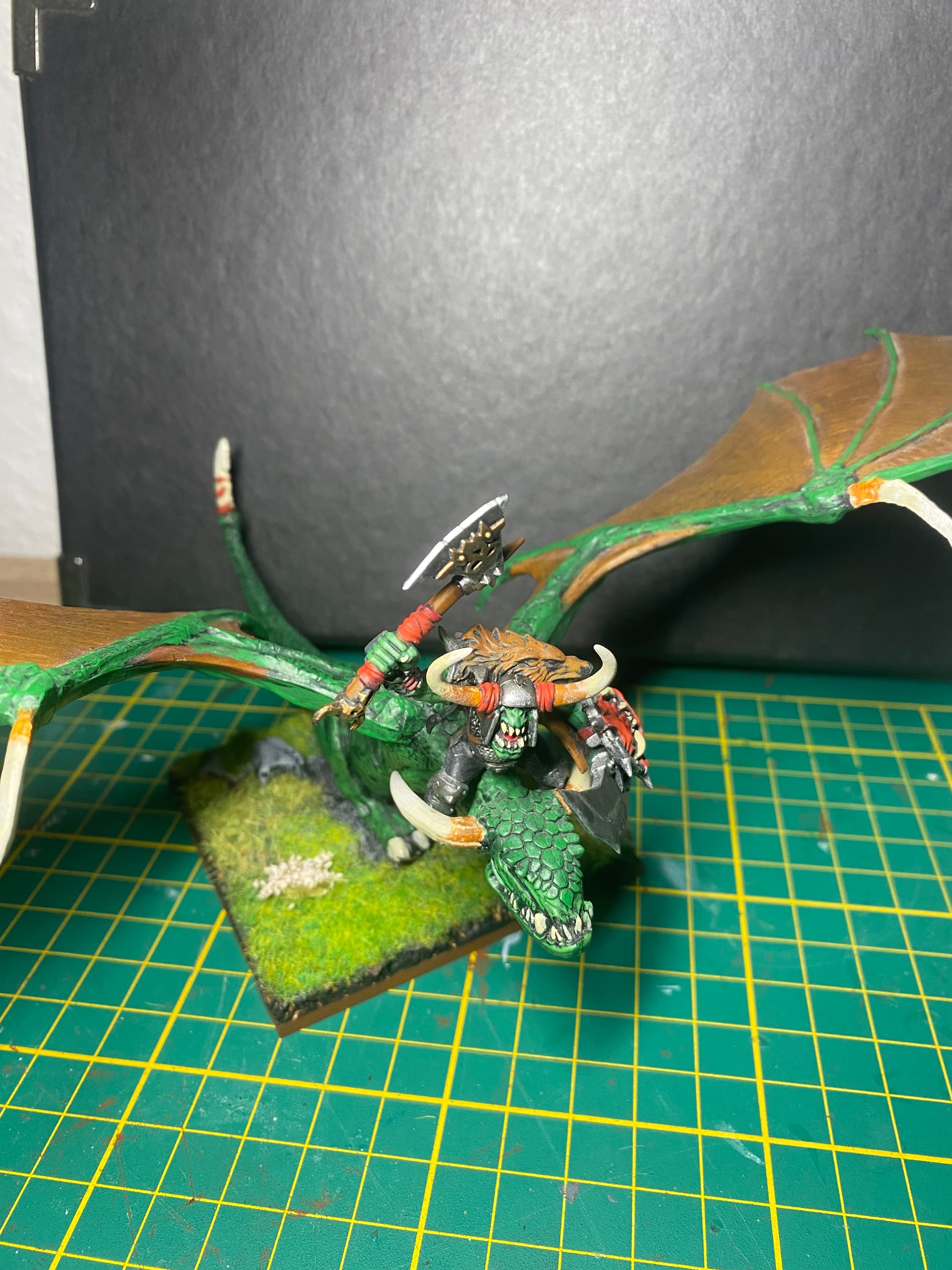 A beautiful wyvern. I already started teaching my kids the very important cryptozoolgy and told them how to distinguish a dragon from a wyvern (at least following GW rules). If the arms are missing or the wings, it ain’t a dragon. They should know when they face one (when, not if!).
