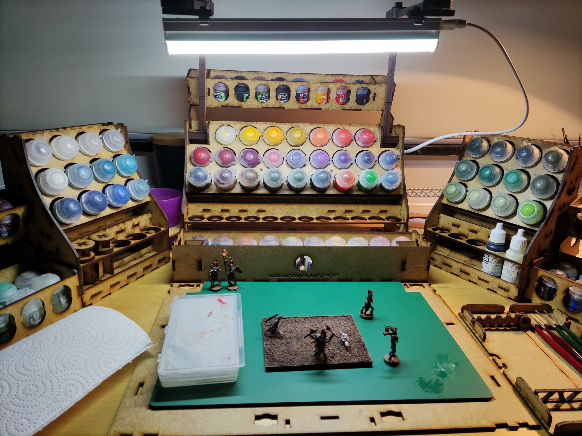 The large one with light setup looks amazing. Please let us (me) know if it works well for you, the missus might appreciate it if I could pack up my paint station to keep things neater haha
