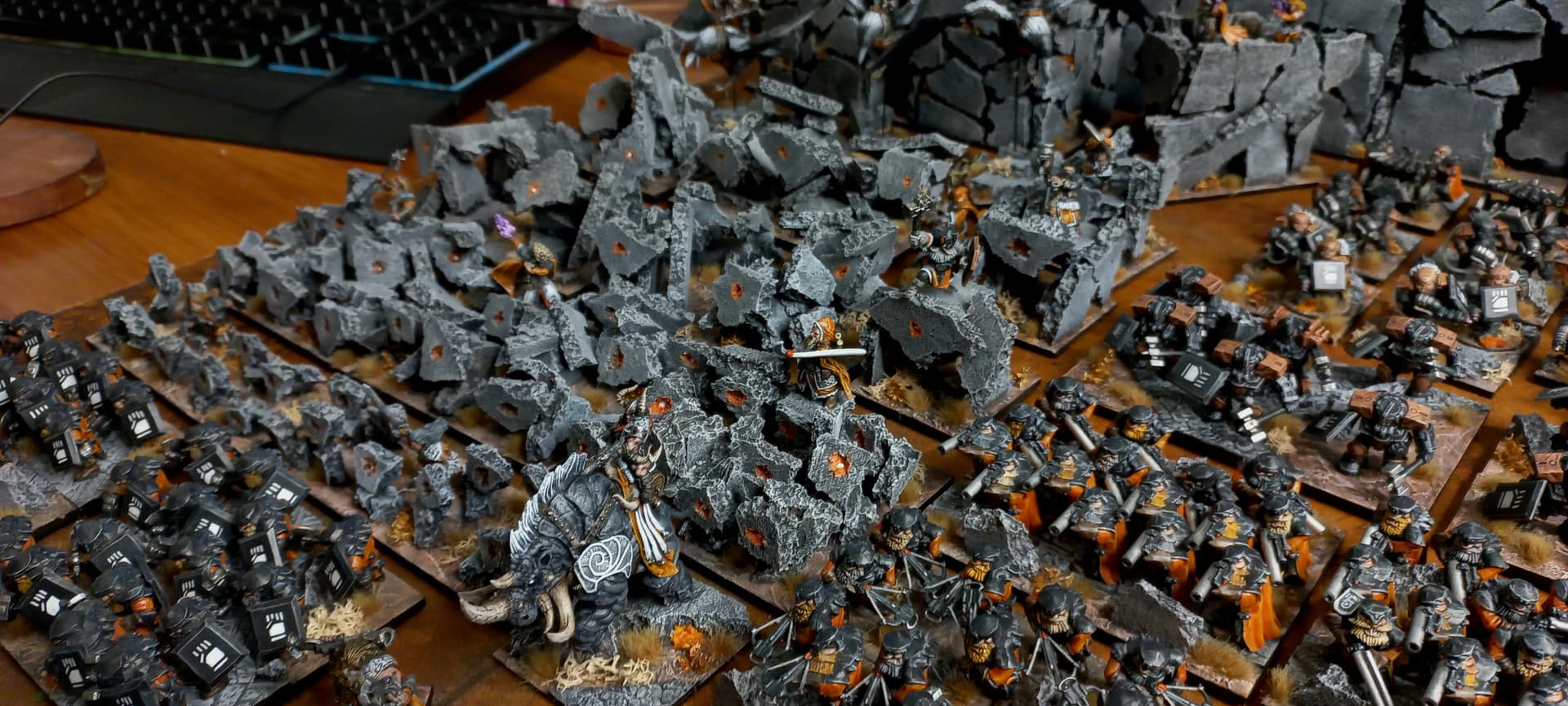 Total comes to around 12,000pts, including a few Free Dwarf units and a castle I made for them up the back!