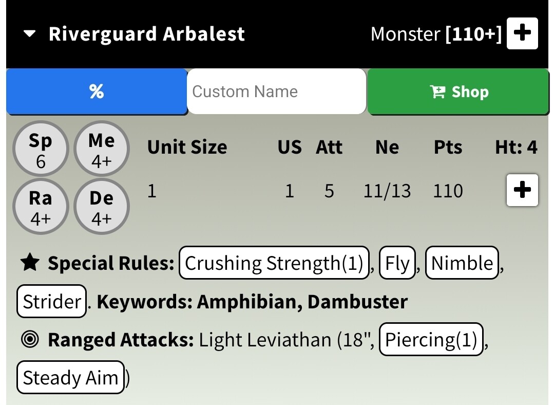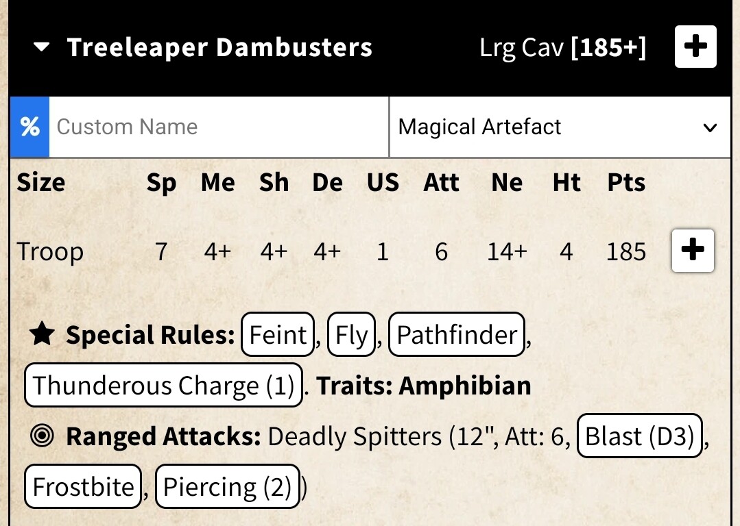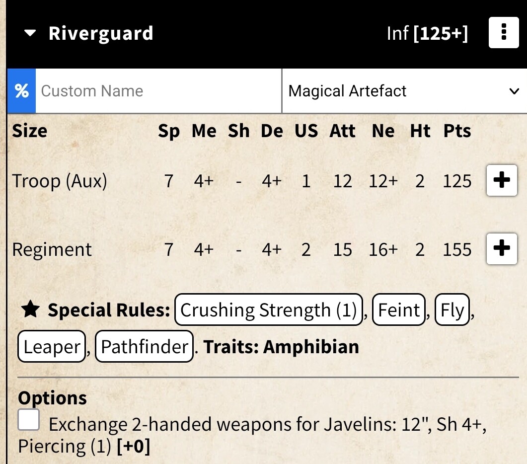 Minor one: under options it doesn’t mention you lose Crushing Strength (1). It works though - you do lose it if the option is selected and the unit is added to the list.