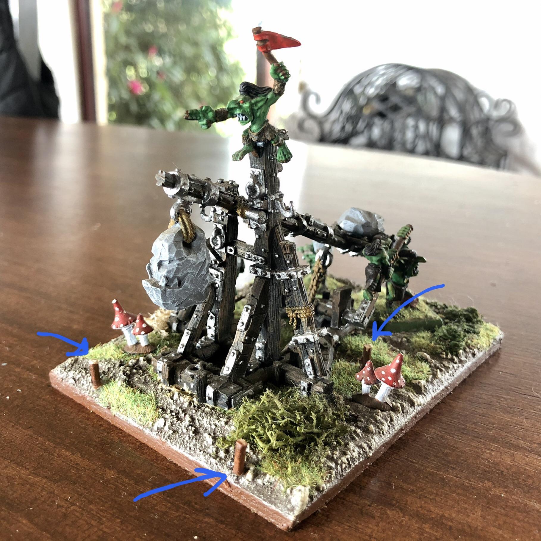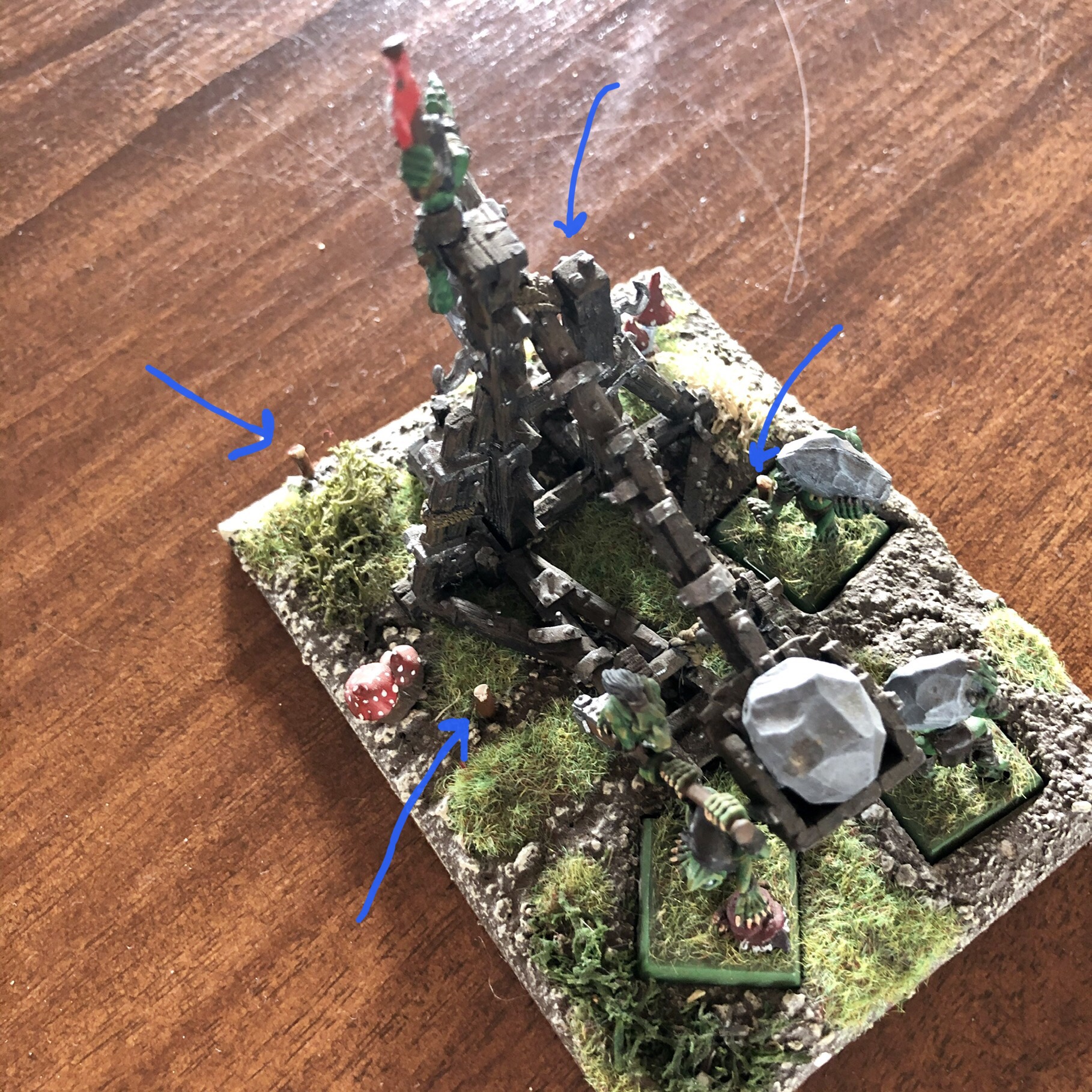 I have added little stumps to my Gobbo Rock Chukka to help my opponents define the base area of my model for game purposes. Saves on arguments!