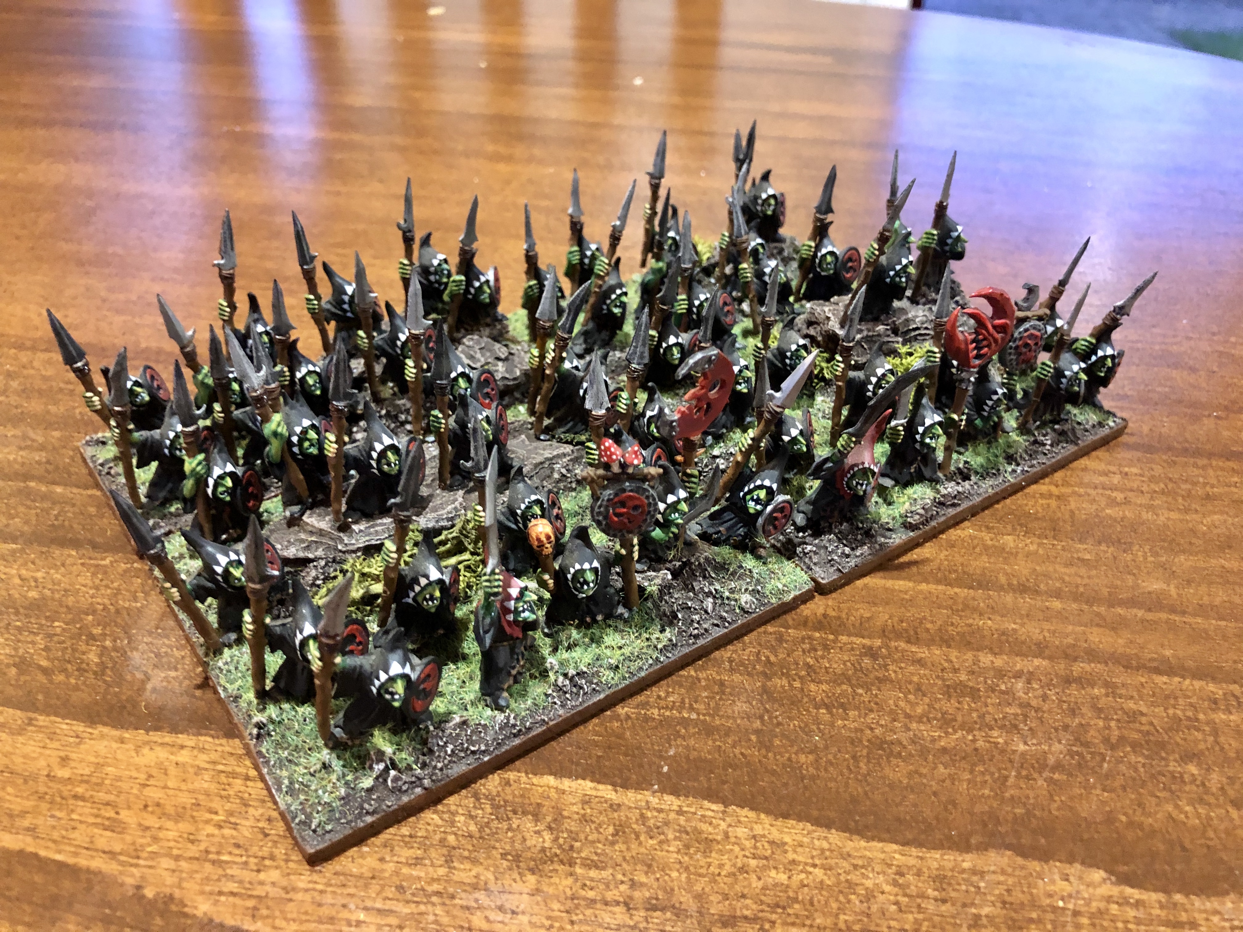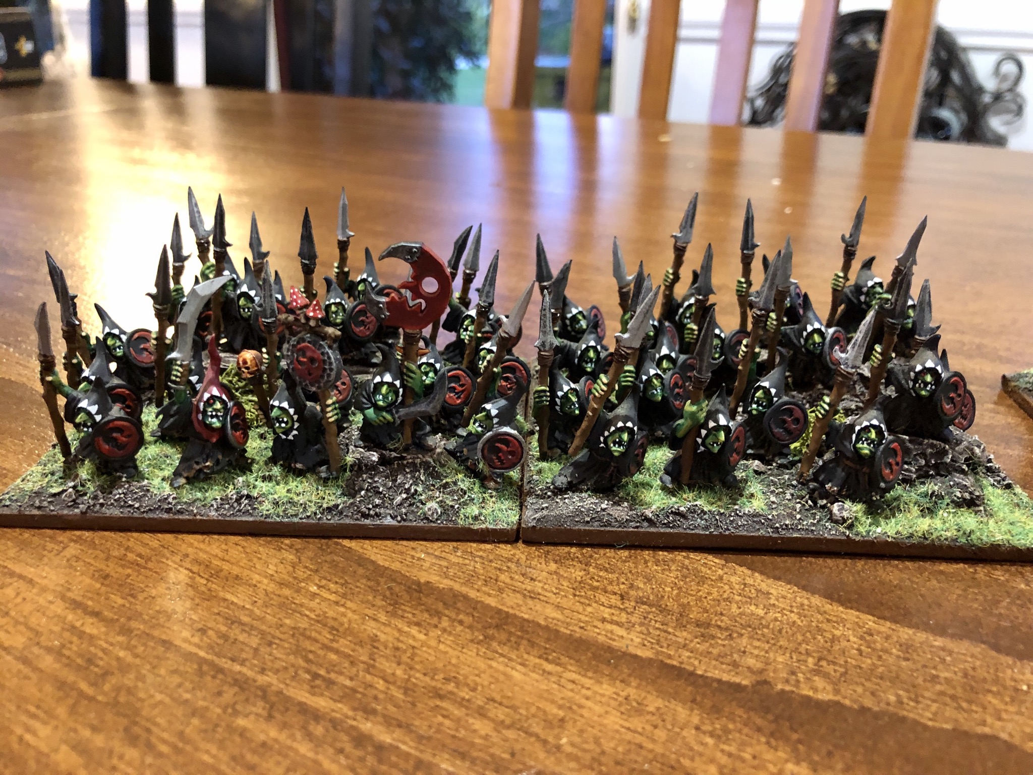 Nice, i do so love my own ‘Night goblin’ Sharpstick legion,. What’s not to love about a phalanx unit of 35 attacks, even hitting of 5’s and a nerve of 25/27, even before you add a mawpup or a cheap wiz to Bane chant them for extra damage, or boost them wth an artifact .