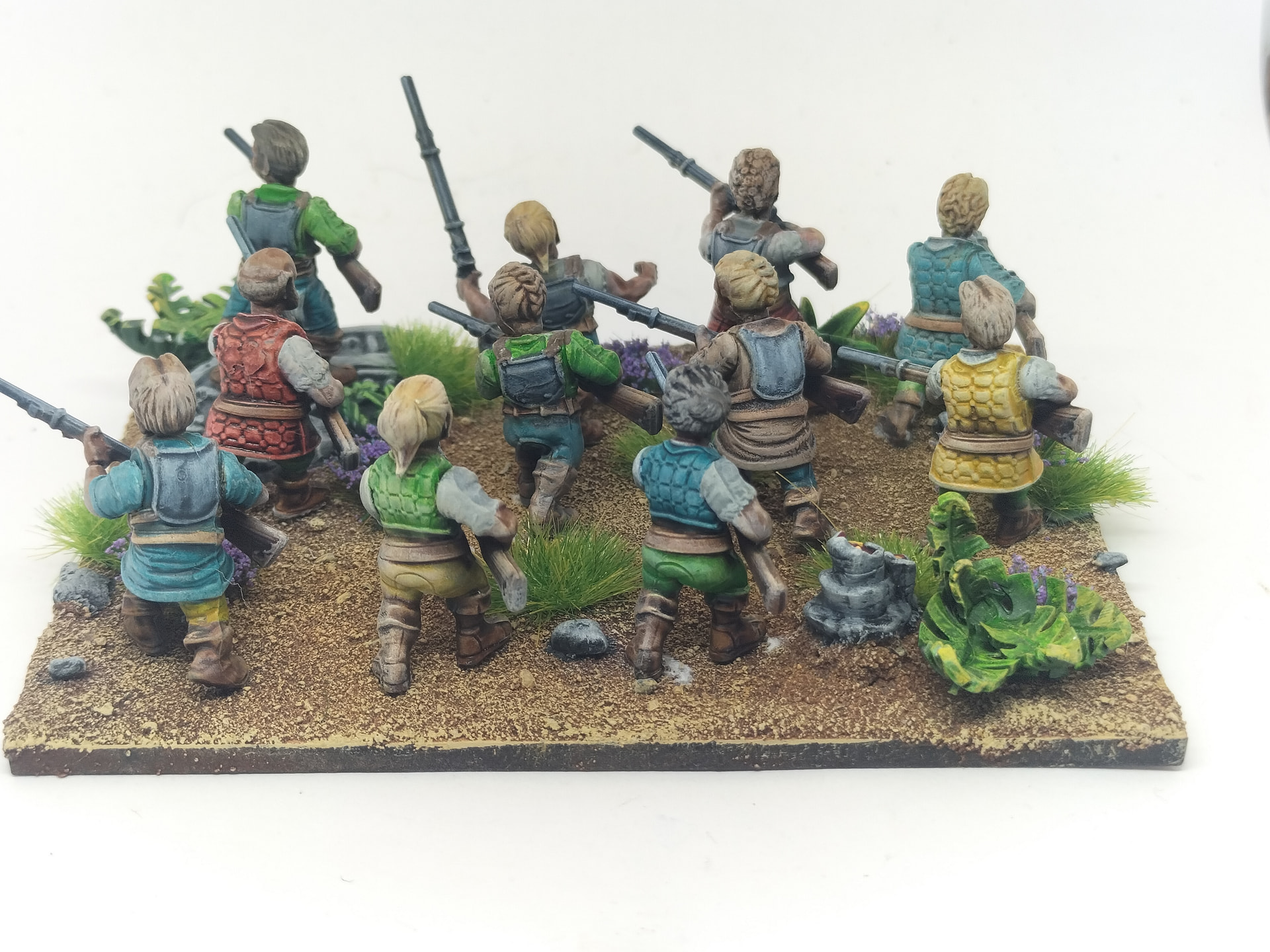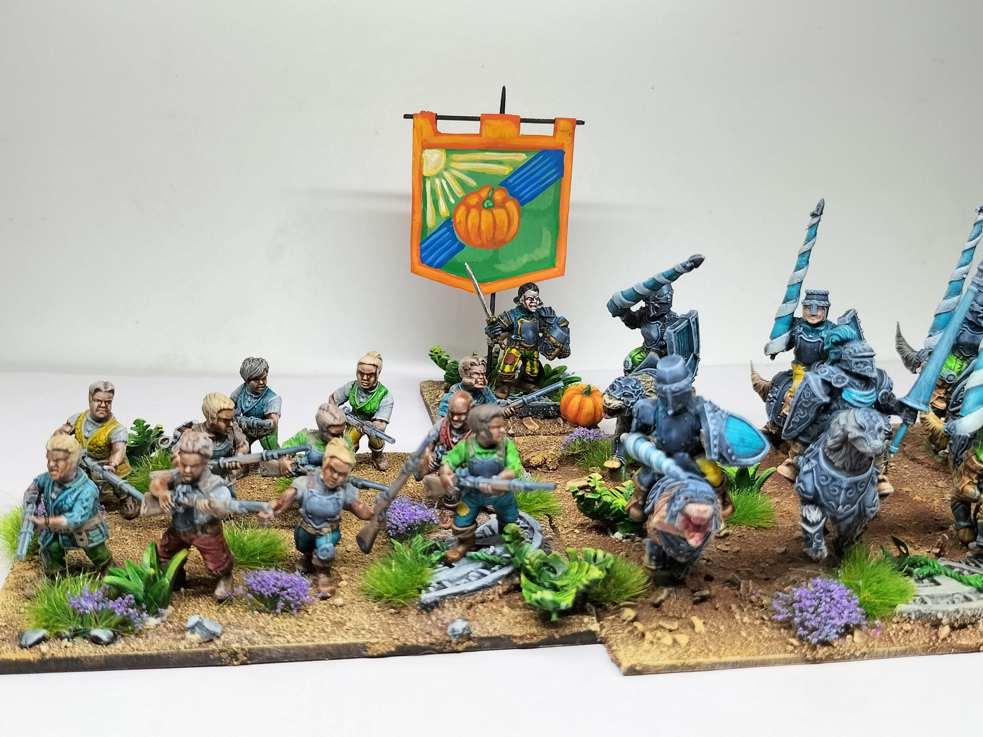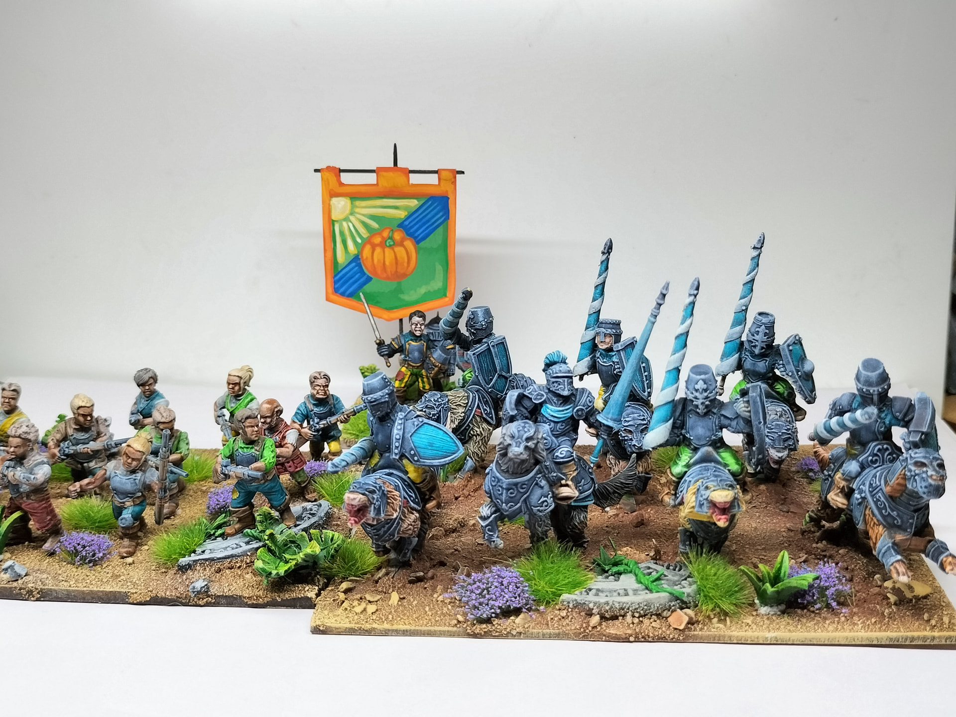 Surfacing from mypaintdesk for a while I spotted the Mantic Slow grow thingy, What a great idea err excuse to put yet another army onto my desk, so which army to do ? I decided I wanted to do an Army from the Invasion Book so that there was a more complete list and background, as I already have two Xirkaali Armies to paint for commissions I looked elsewhere, my Partner has a Salamander Army planned and so it was either Trident Realm or Halflings, I chose the Halflings for ease as I had picked up the old Mega army set for Half (giggle) price at the Mantic Open Day.