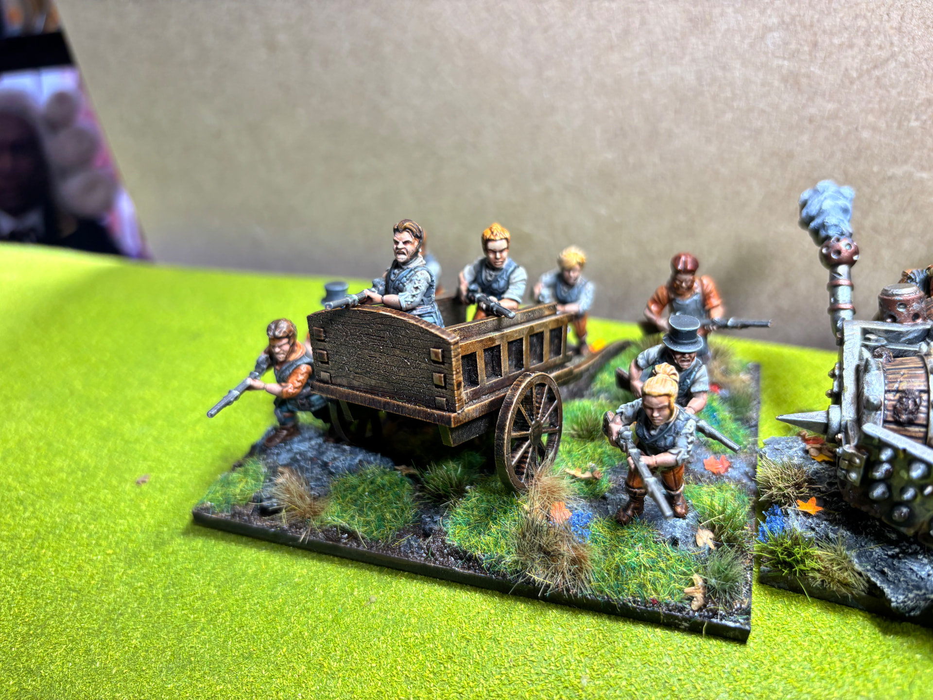 I have managed to find some MDF farm carts and wheelbarrows along with picking up some second hand fences from a model railway sale. I will use these to scatter around the bases. The idea is to have it look like some abandoned fields on the outskirts of their villages. So the fences will be broken and the carts etc may have been left or pulled with them to add cover.