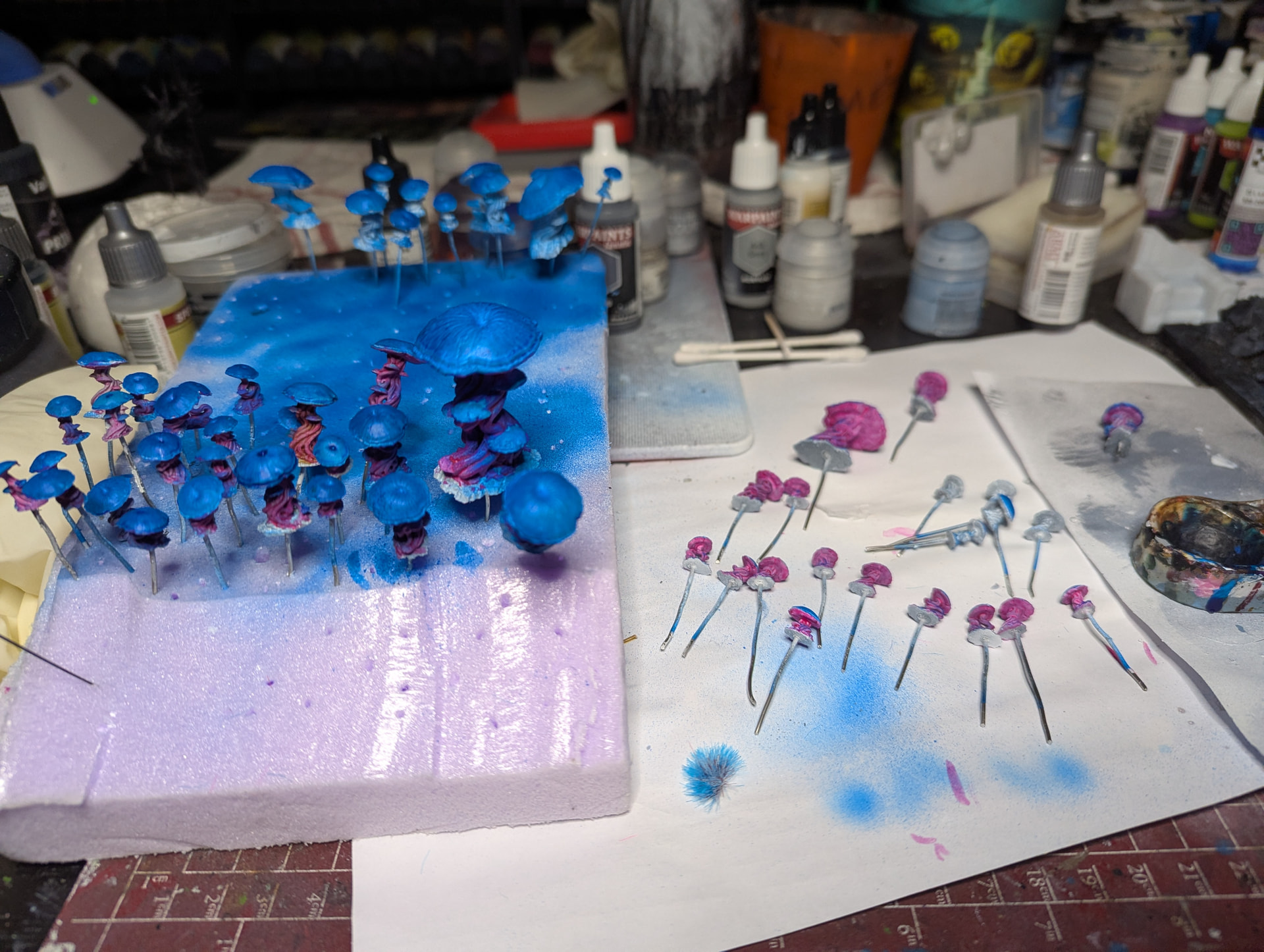 yesterday I progressed with the mushrooms that will give some bioluminescence in the corners. It’s a WIP pic, but still. Hope to finish them this weekend, because when they’re done the bases are 99% finished. Then I have to finish something big to stay in time for the challenge