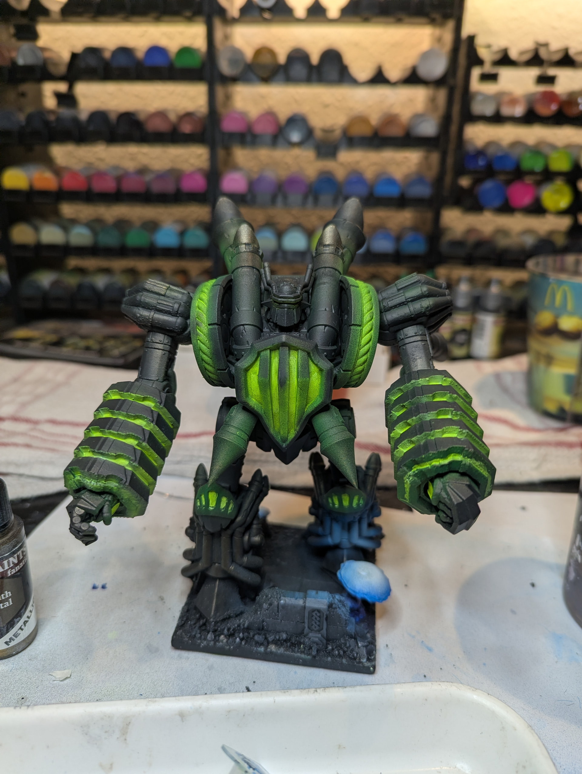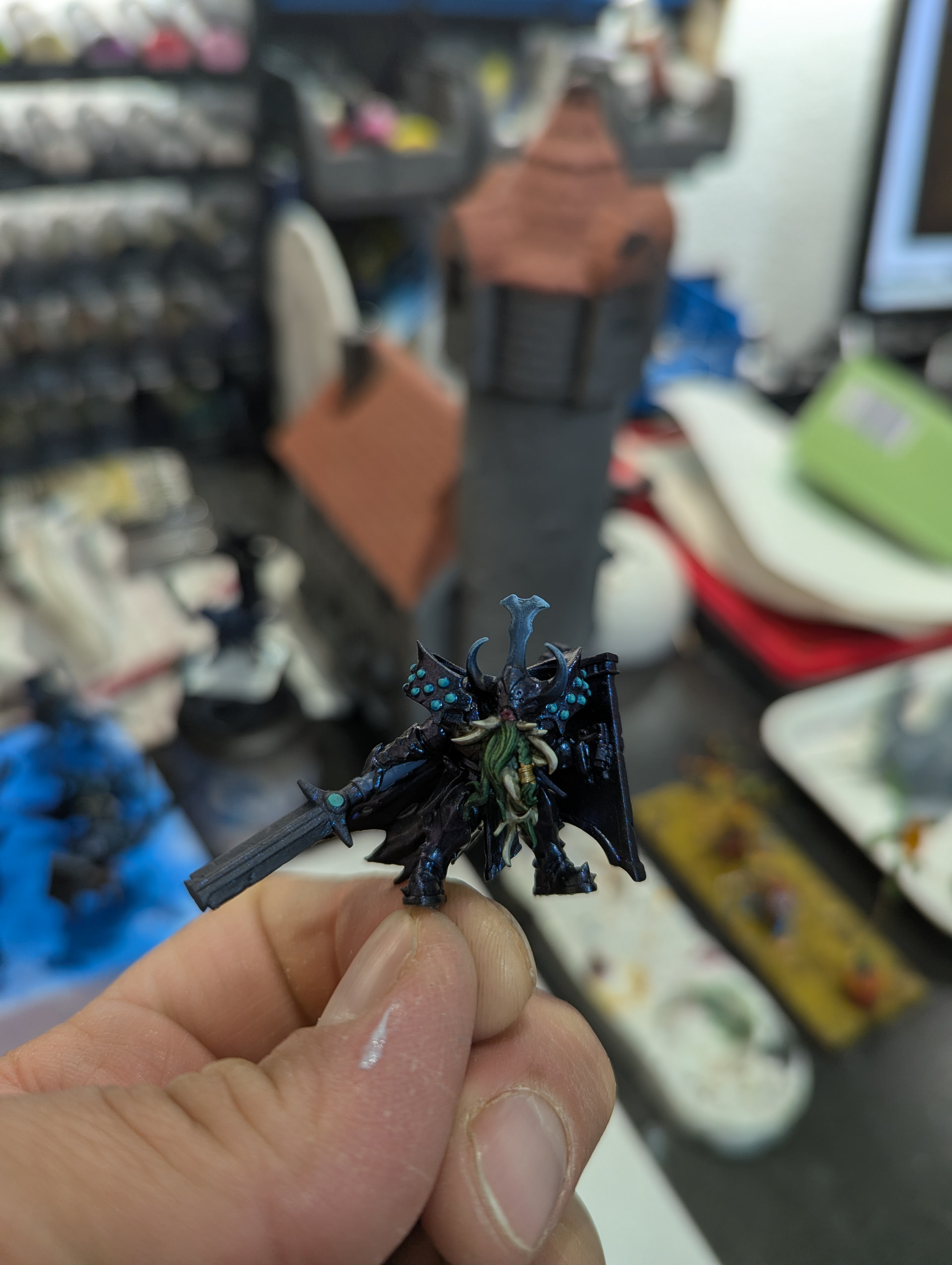 Maybe I’ll try to whiten up the center of the chest area, and go on the borders with a little wash, yeah. But I’ll wait until everything else is finished, that thing does take a lot more work than I initially thought…