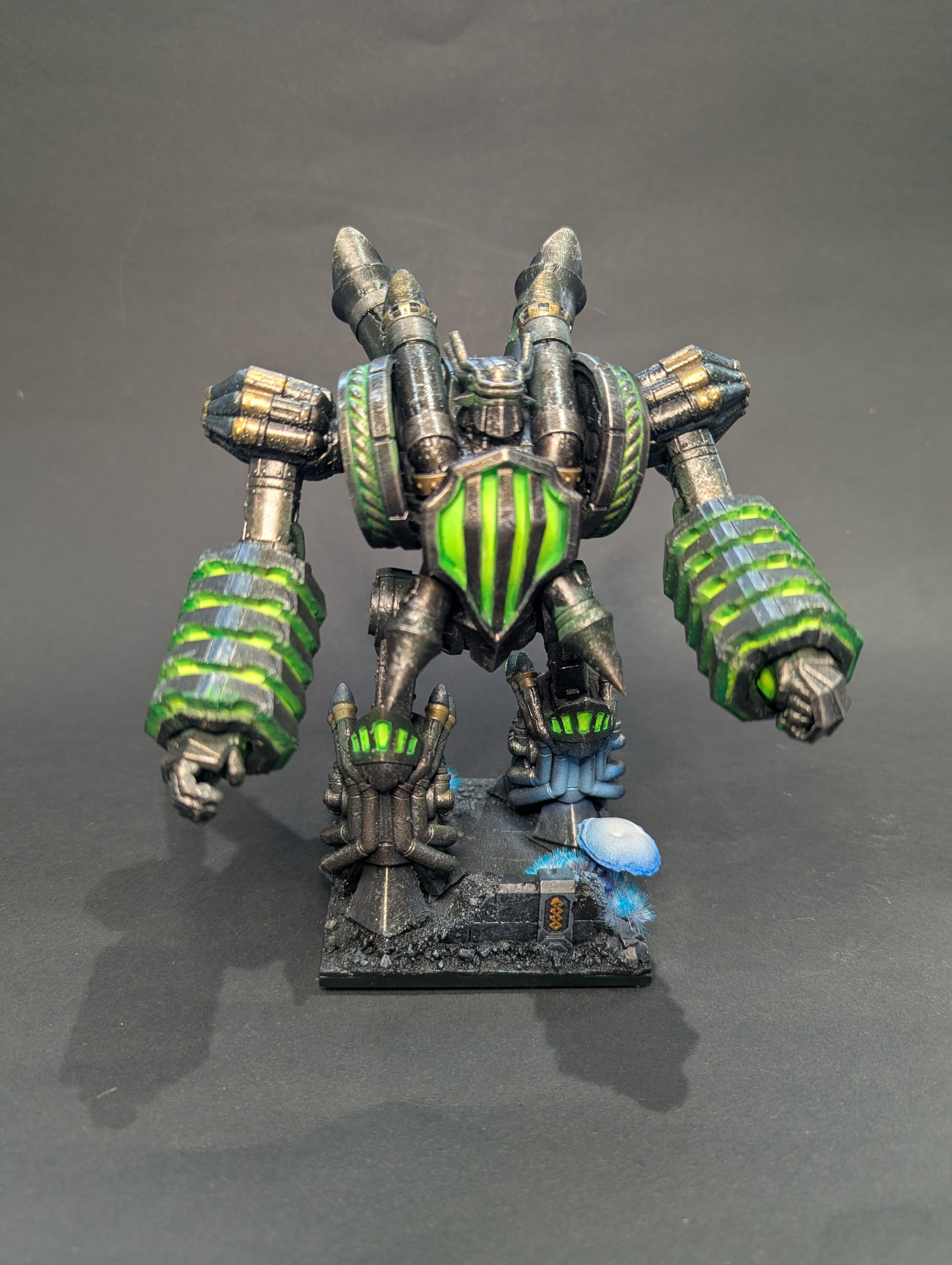 All looking really good. The muted tone of the armor makes the blue and purple really pop.