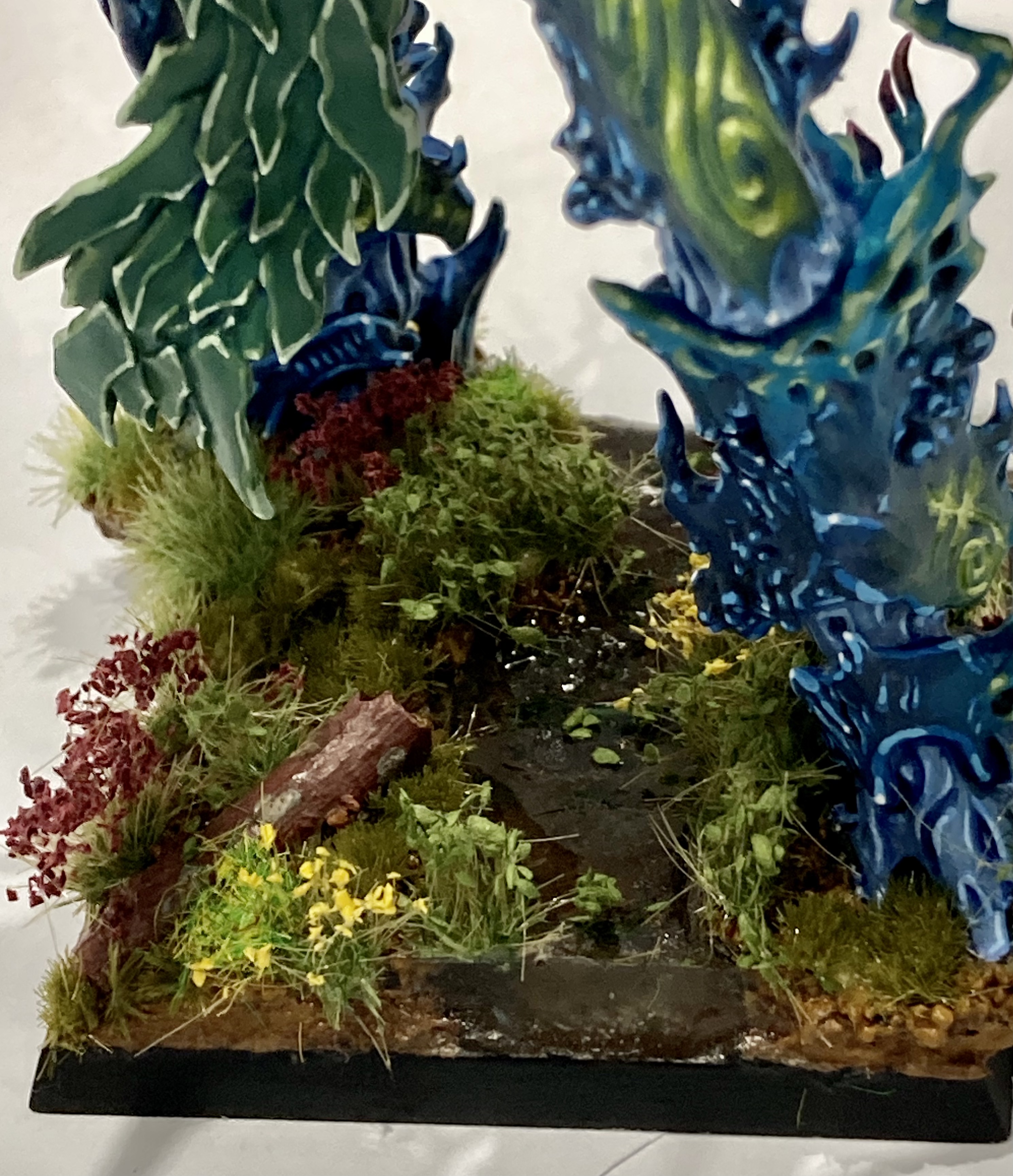 Early on when I was testing the scheme I thought the blue made the sylvaneth look a little too much like coral. I’m very happy with it now though, it gives the trees a more otherworldly vibe that fits with their “fae” aspect.